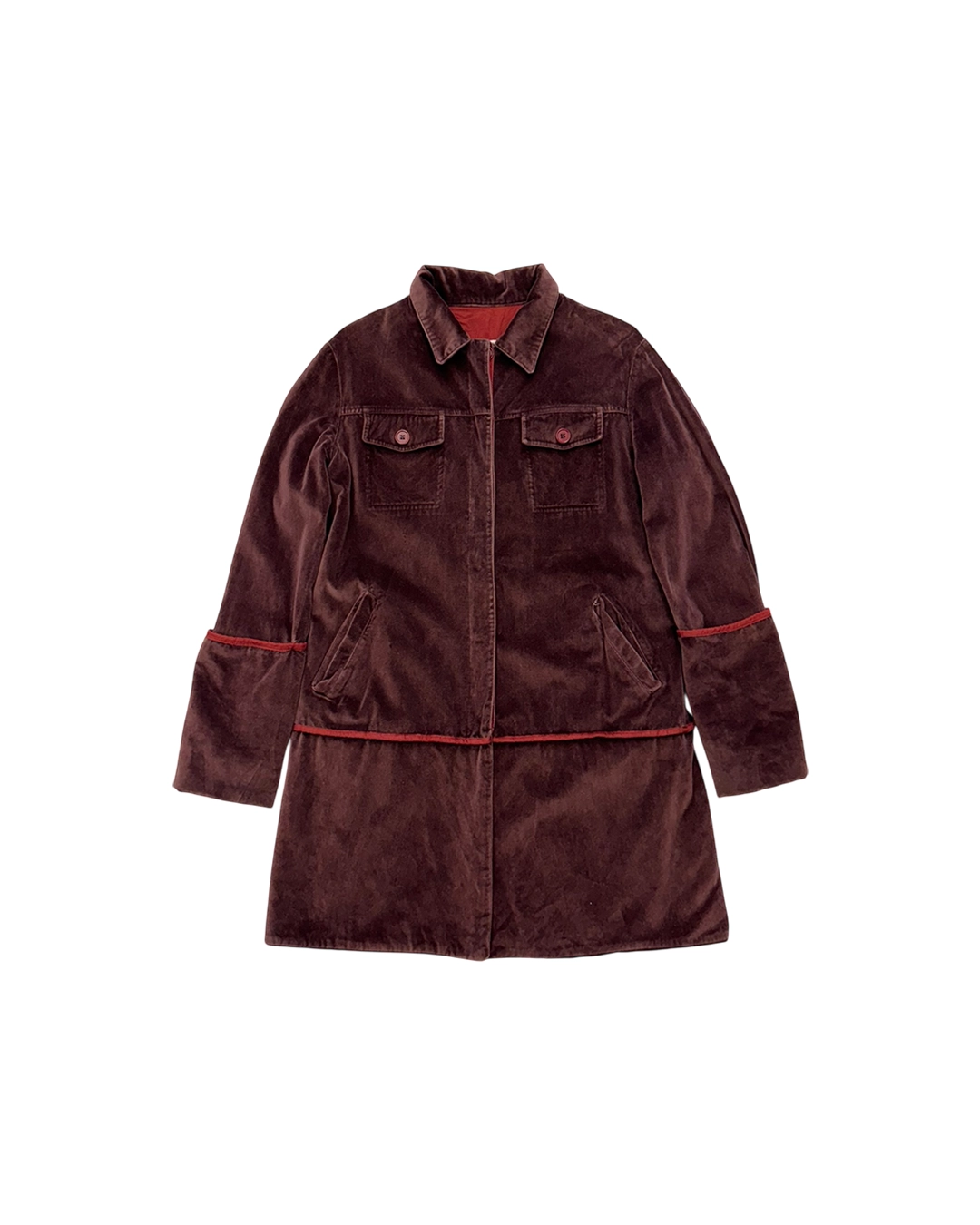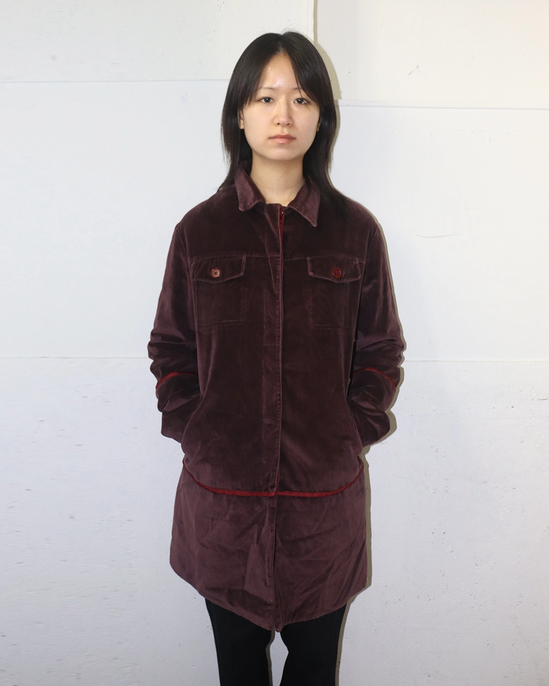 97AW Piping Detail Burgundy Velvet Jacket