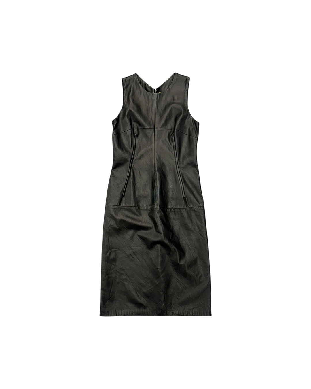 Line Detail Leather Sleeveless Dress