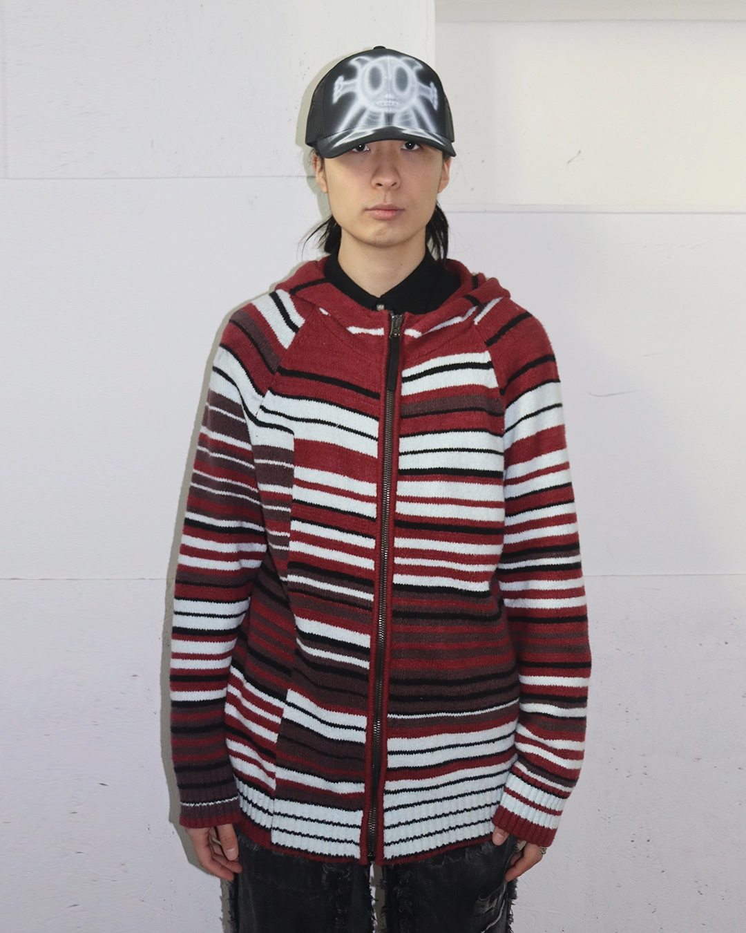 Stripe Knit Hood Zip-Up