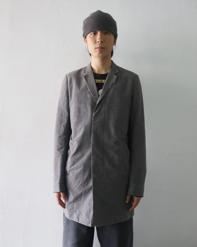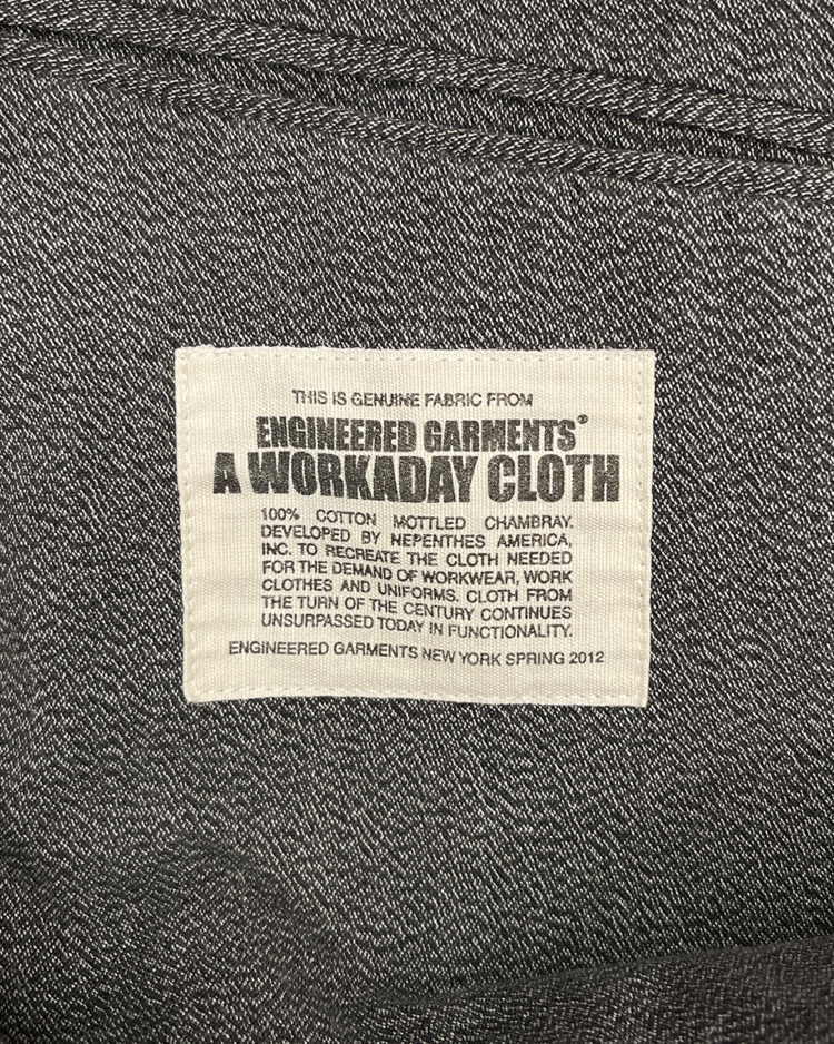 클래식한 밀리터리 스타일과 아메리칸 빈티지 스포츠웨어에 기반을 두고 브랜드를 전개하는 엔 훌리우드와 엔지니어드 가먼츠의 콜라보 제품입니다. 정돈되지 않은 듯한 라펠과 커프스의 컷오프 디테일이 특징으로, 두 브랜드가 공유하는 워크웨어·테일러링·밀리터리 요소가 결합된 아이템입니다. 전체적으로 페이드된 느낌입니다.