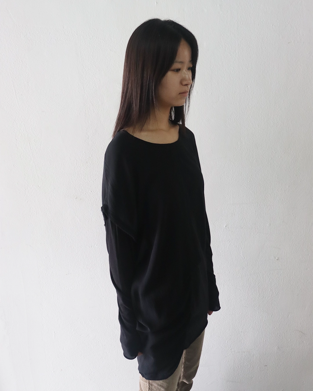 Asymmetric Draped Long Sleeve Top