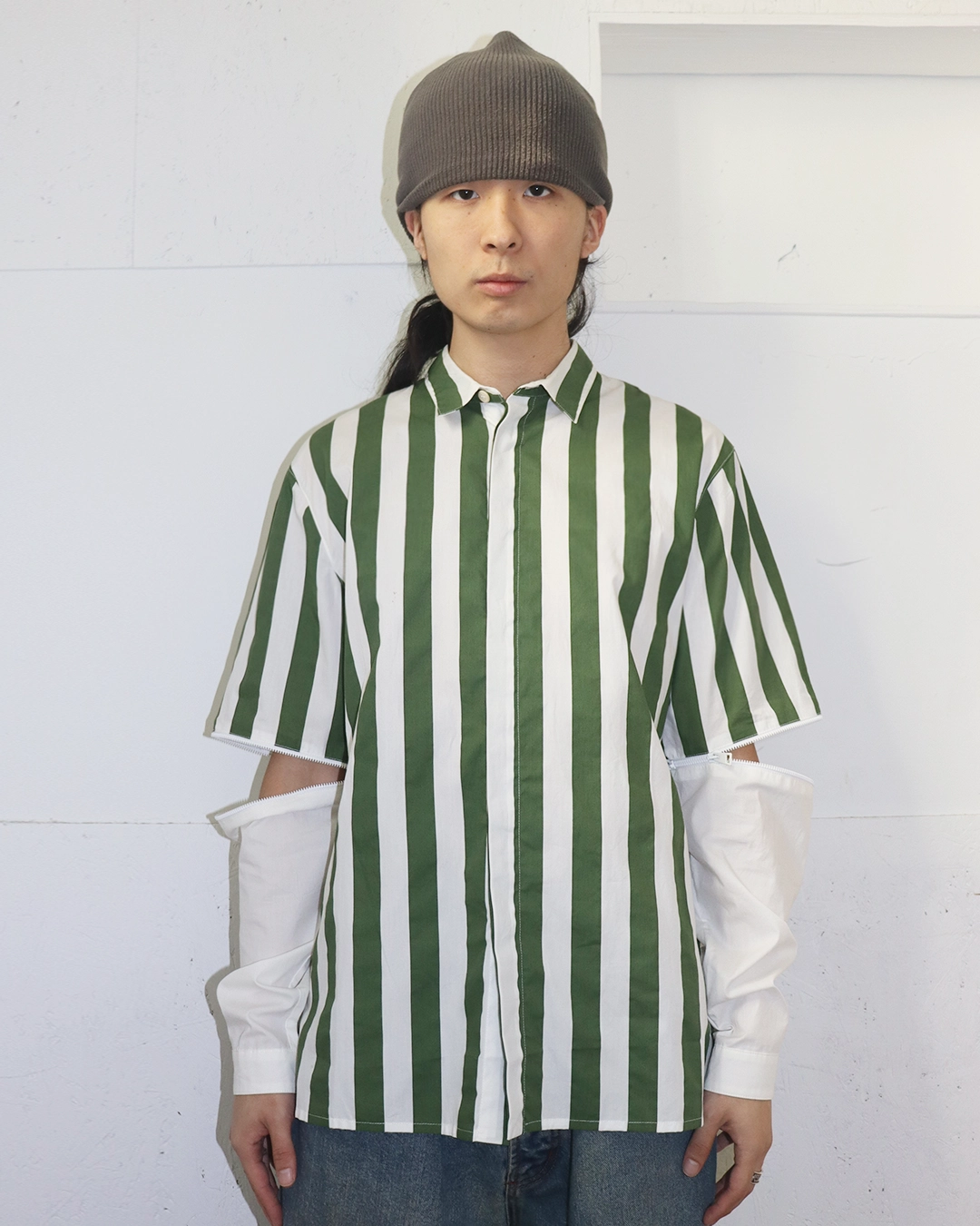Detachable Sleeve Stripe Shirt