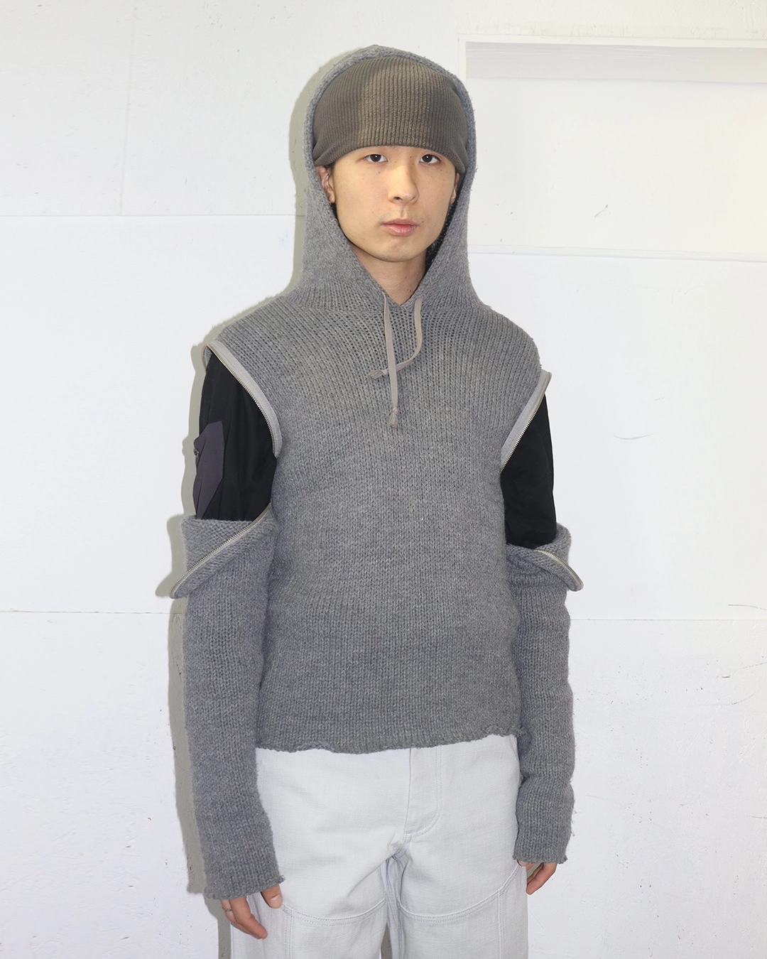 Knit Hoodie with Detachable Sleeves