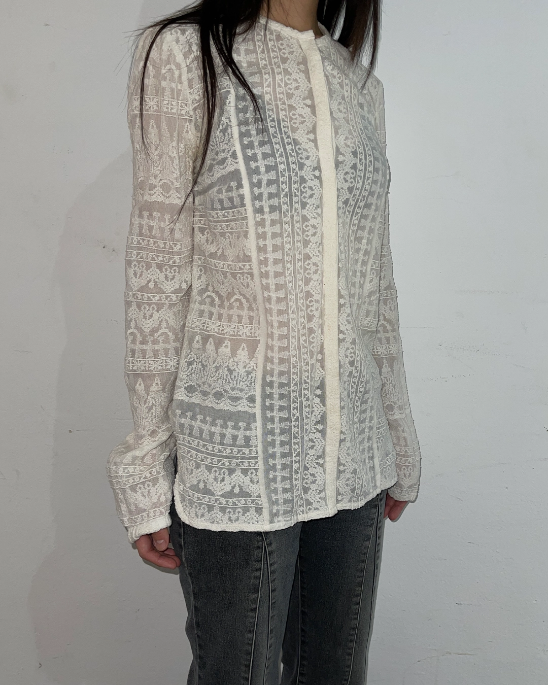 Cream Sheer Embroidered Blouse
