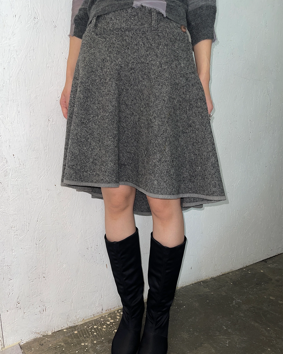 80s Grey Wool Flared Skirt
