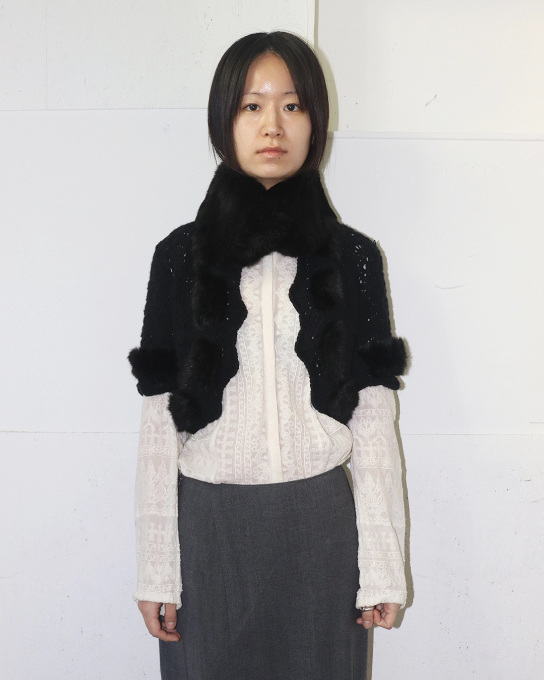 Short Sleeve Fur Detail Crochet Jacket