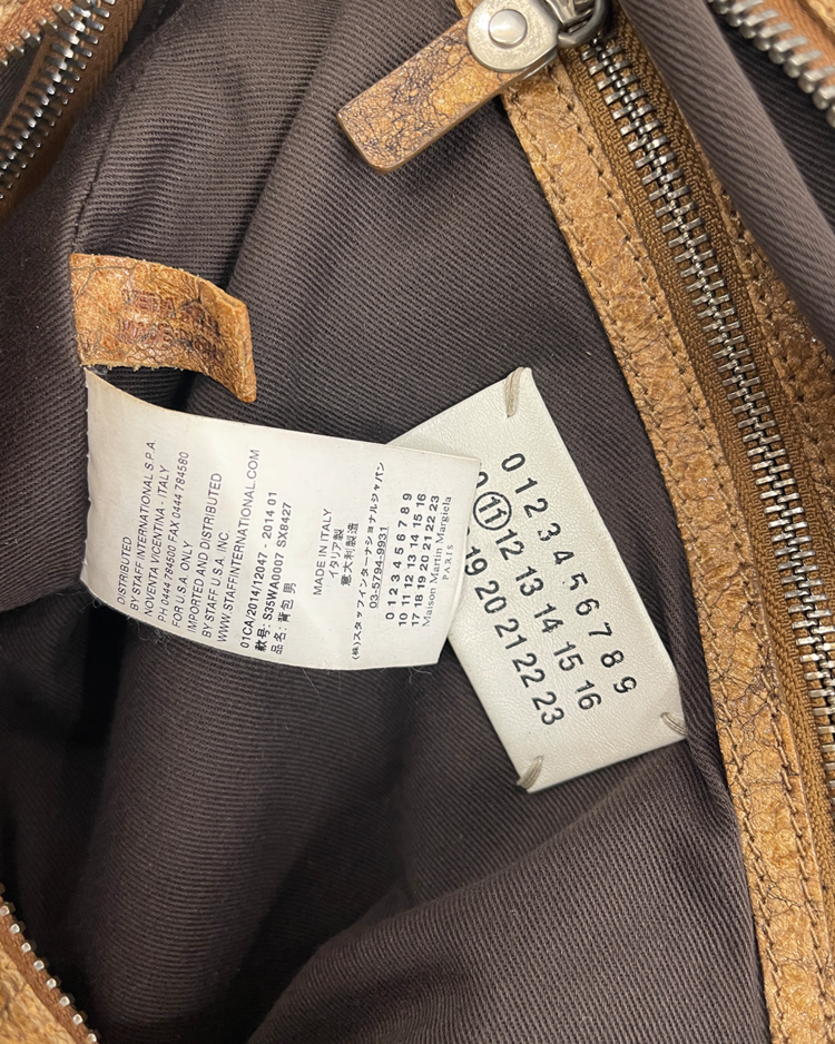마르지엘라의 크랙 디테일이 돋보이는 레더 백팩입니다.