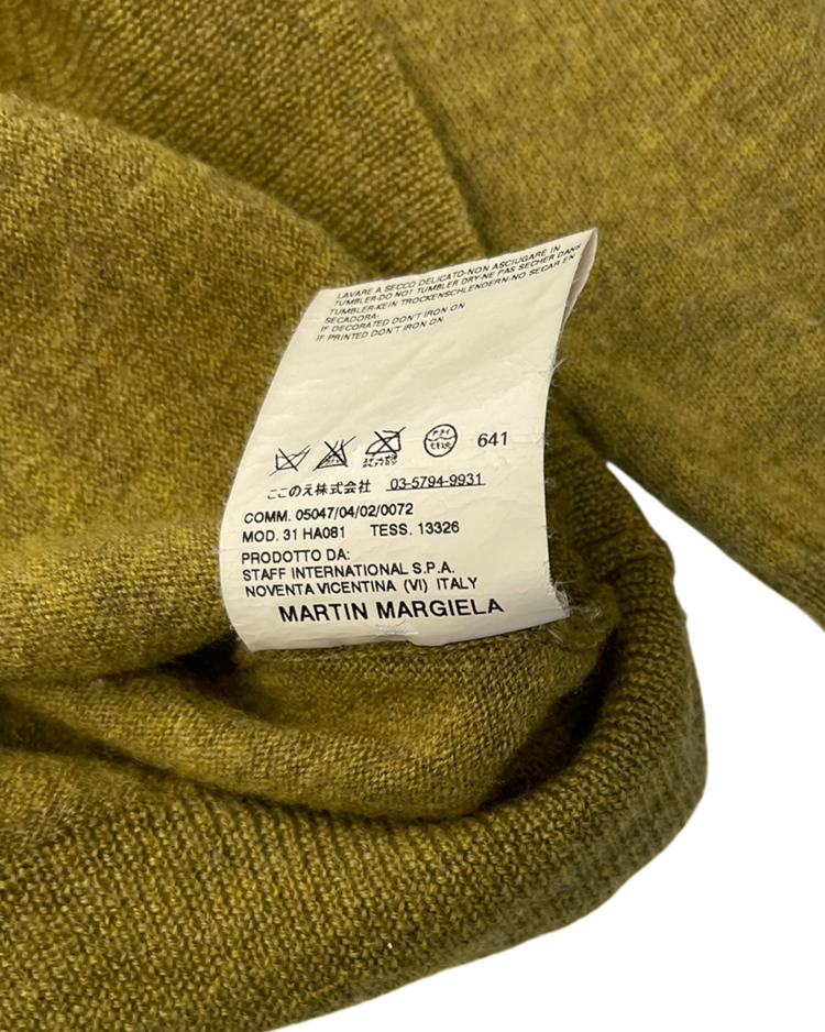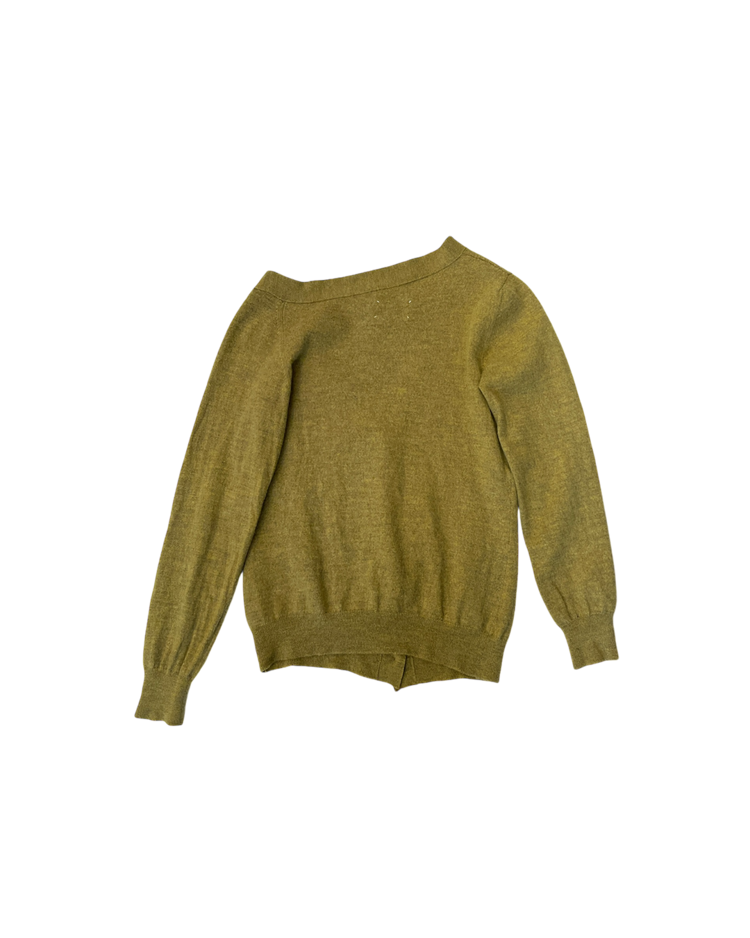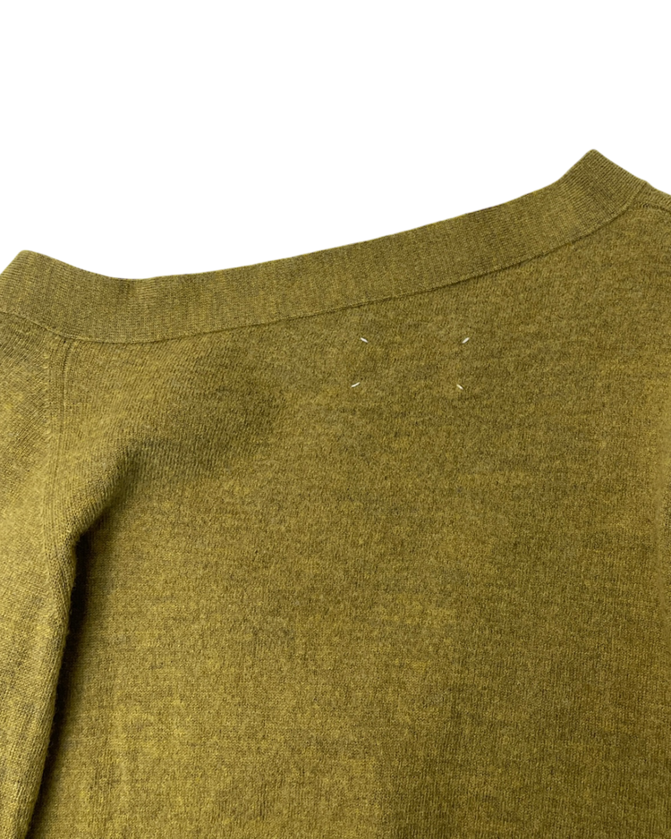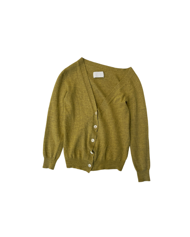 마틴 시기의 화이트 라벨 가디건입니다. 우측 어깨만 봉제가 존재해 좌측 드레이프한 핏이 매력적인 제품입니다.