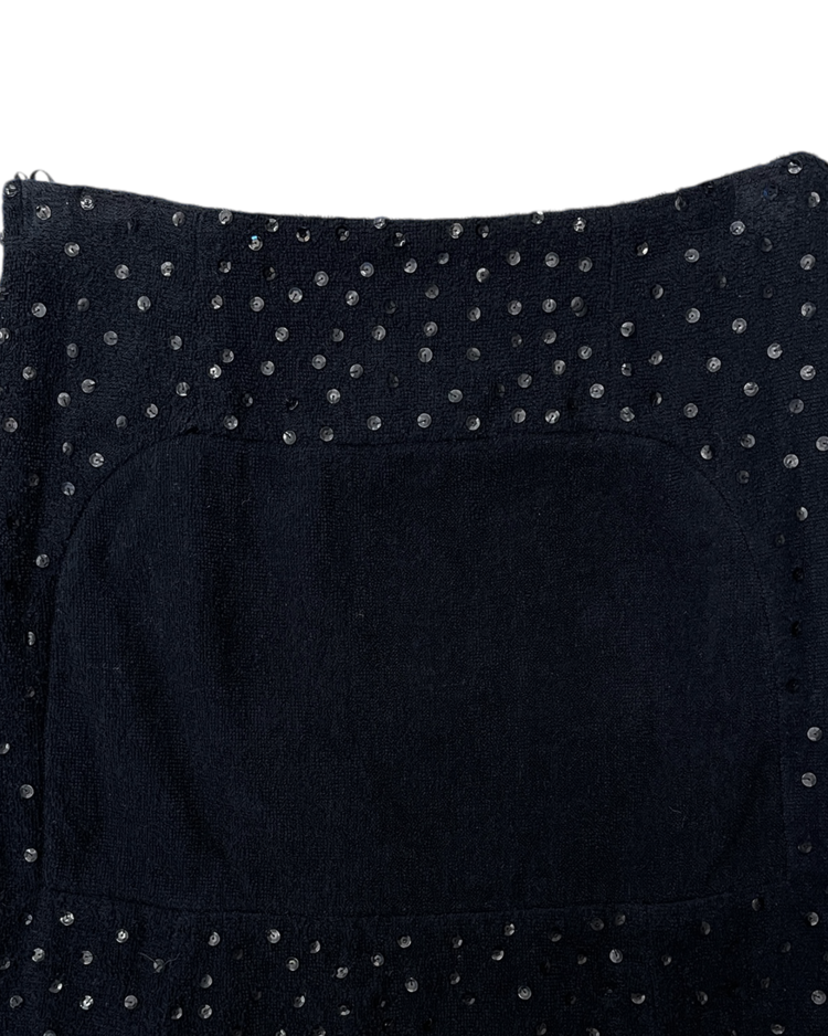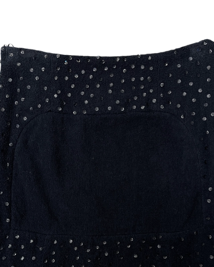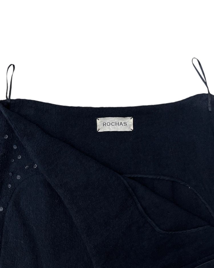 100년 역사를 가진 프랑스 브랜드 로샤스의 미니 스커트입니다. 스팽글과 원단감이 매력적인 제품입니다.