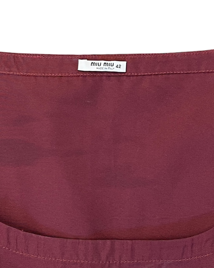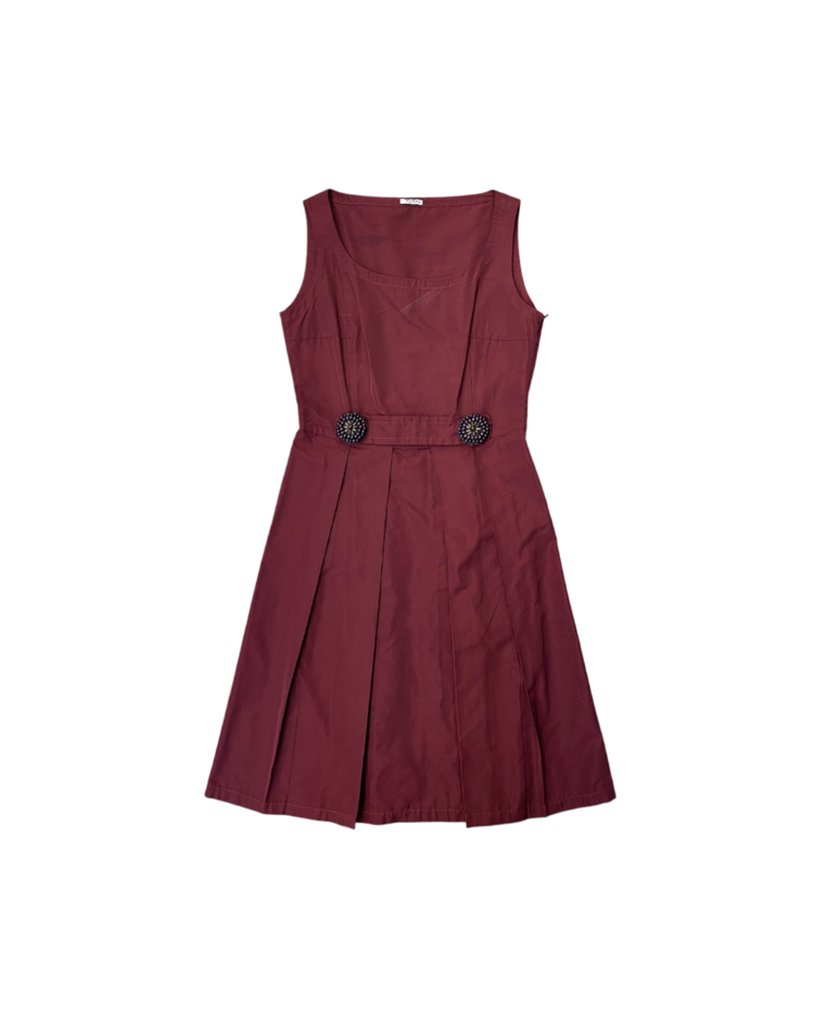 프라다보다 비교적 개성이 강한 미우미우의 원피스입니다. 허리 부분 앤티크한 비즈 장식이 매력적인 제품입니다.