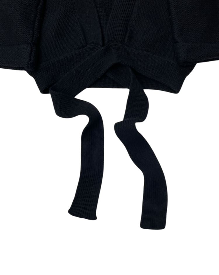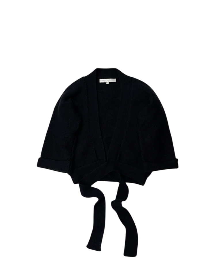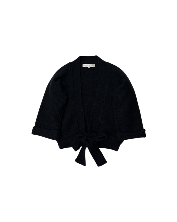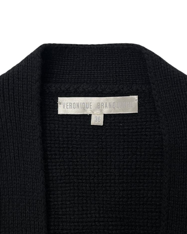 간결한 실루엣과 우아한 디테일로 브랜드를 전개했던 베로니크 브란퀸호의 제품입니다. 짧은 기장감의 가디건이며, 밑단에 스트랩이 매력적인 제품입니다.