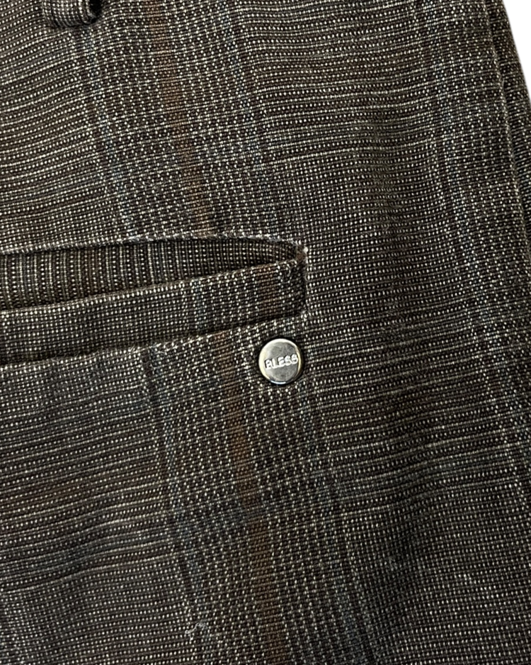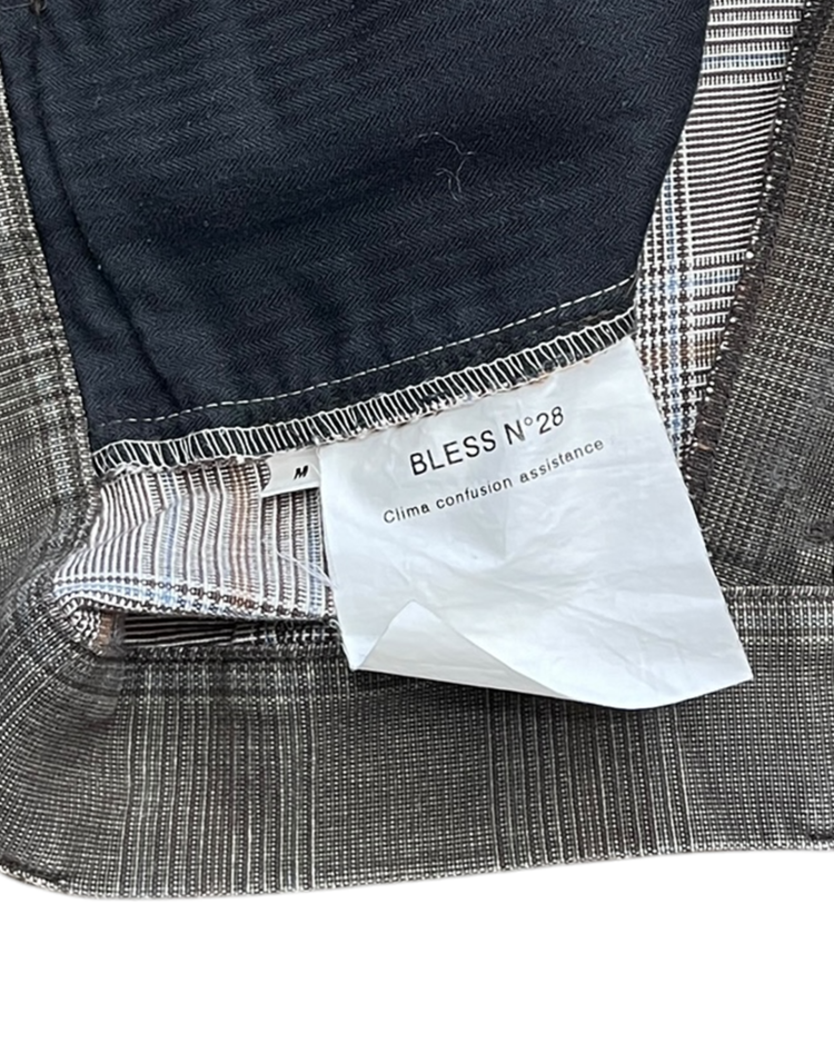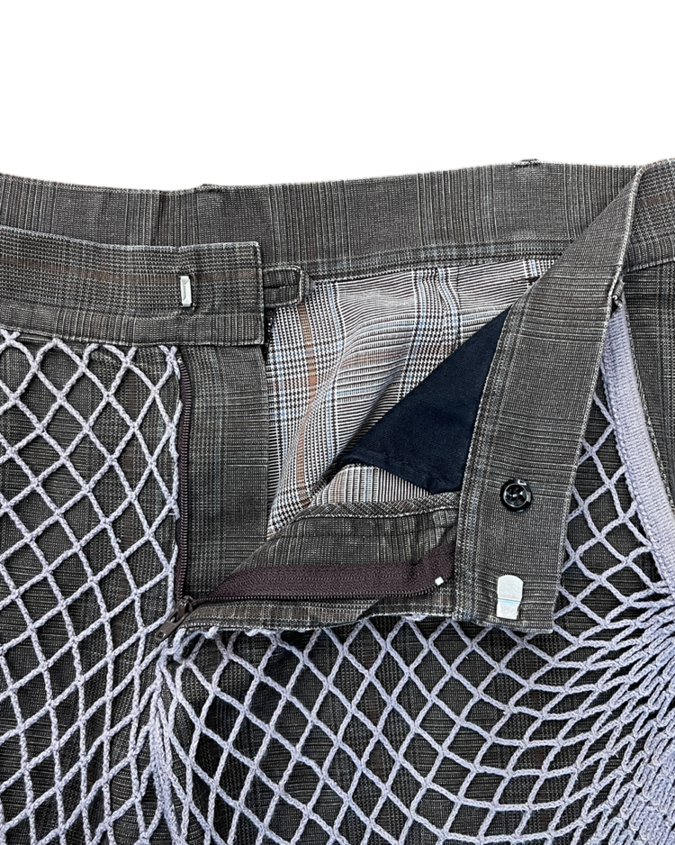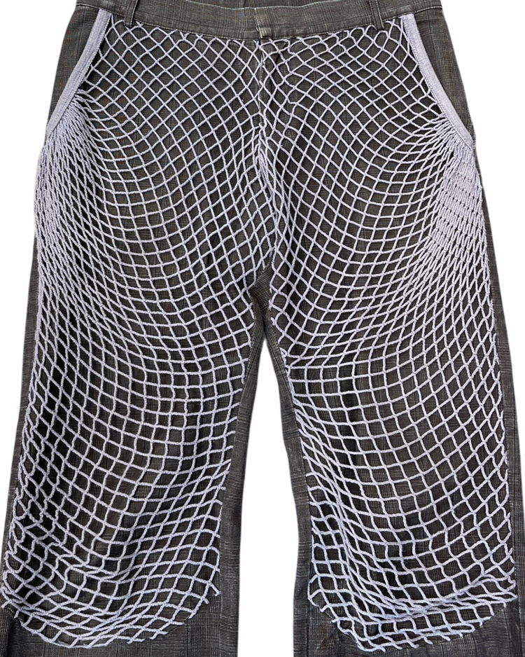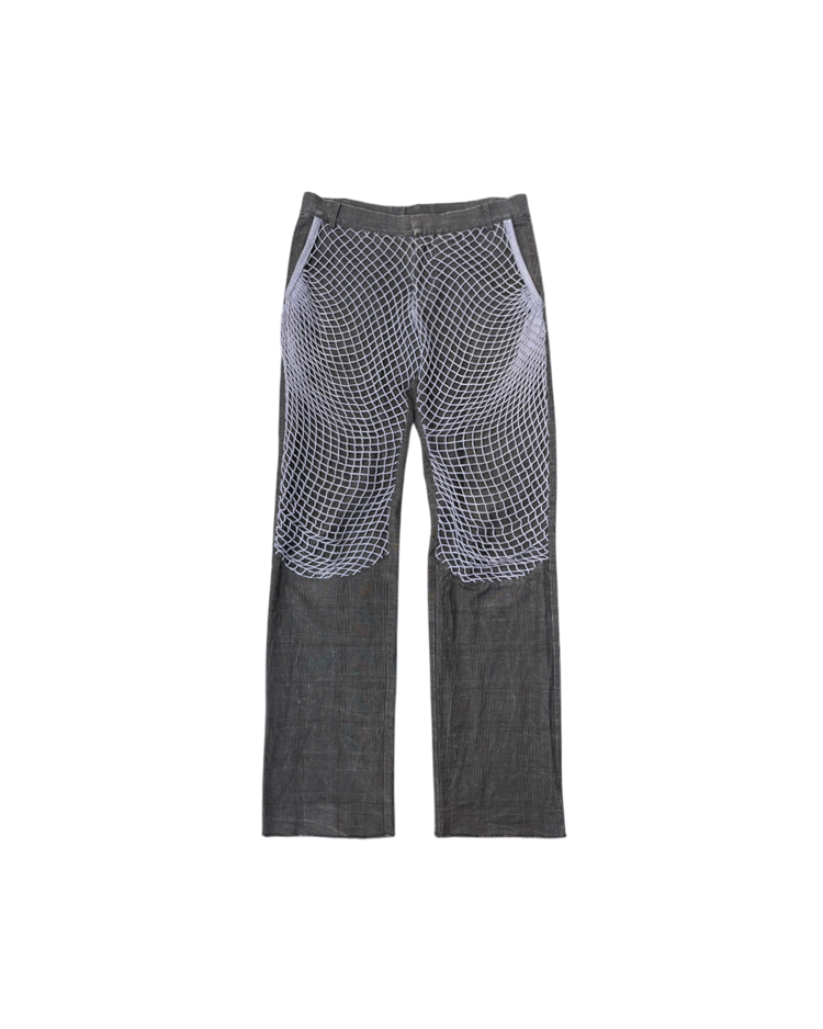 패션과 예술의 경계를 넘나드는 브랜드 블레스의 팬츠입니다. 전면부 연결된 그물망 디테일이 매력적인 제품입니다.