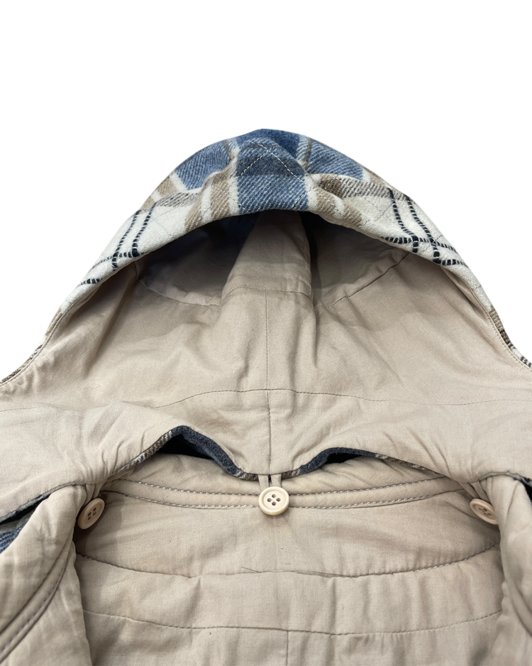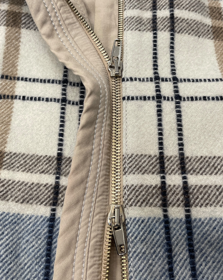 혁신적인 디자이너, 도전하는 철학자 등의 수식어가 붙은 디자이너 후세인 샬라얀의 제품입니다. 탈부착 가능한 후드와 투웨이 지퍼로 다양한 스타일 연출이 가능하며, 체크 패턴의 배색이 매력적인 제품입니다.