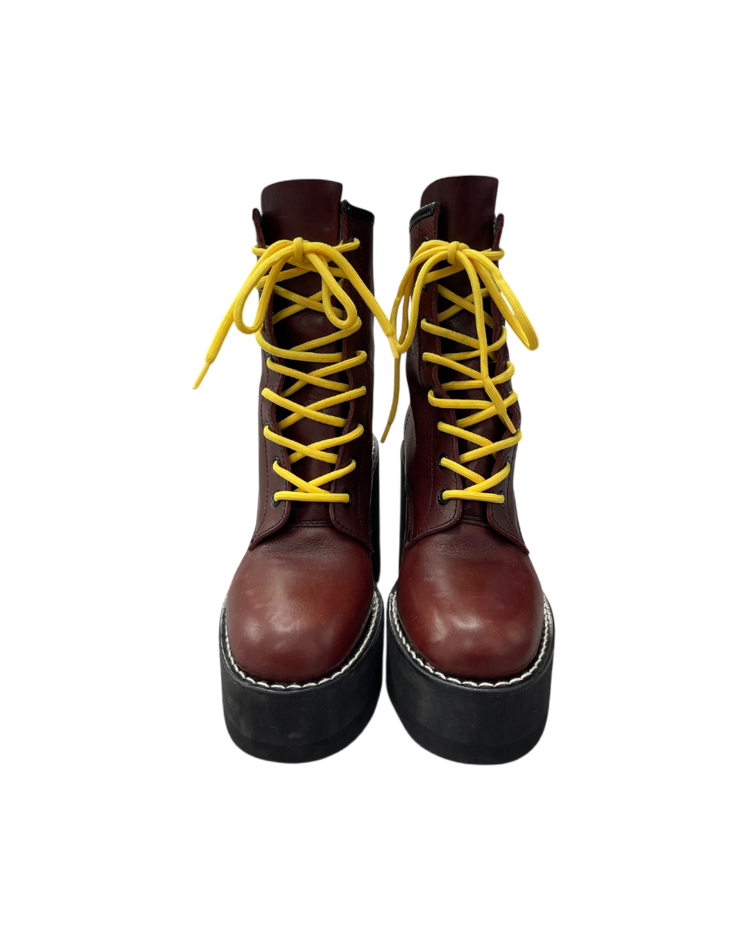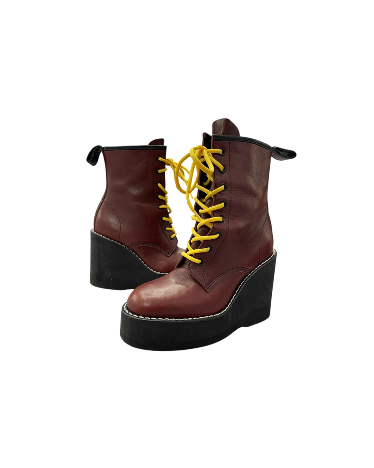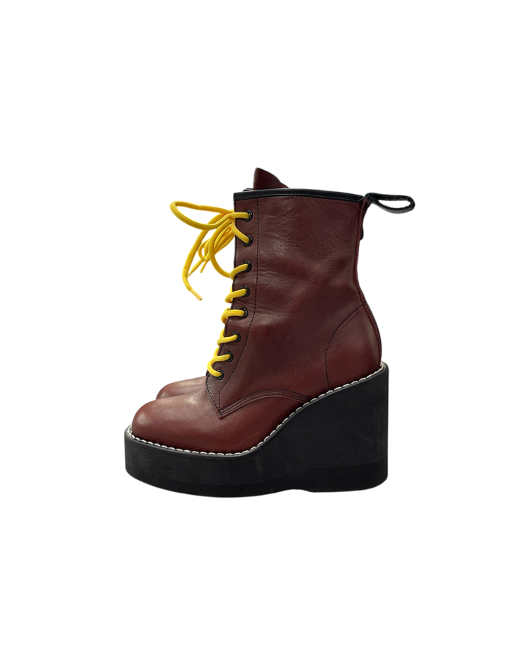 믹스 매치와 하이브리드 디자인으로 유명한 사카이의 플랫폼 부츠입니다. 비브람 솔을 사용하여 굽에 비해 무게가 가볍습니다.