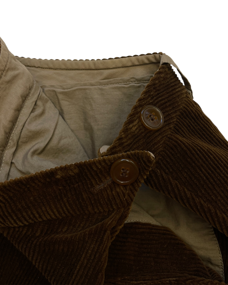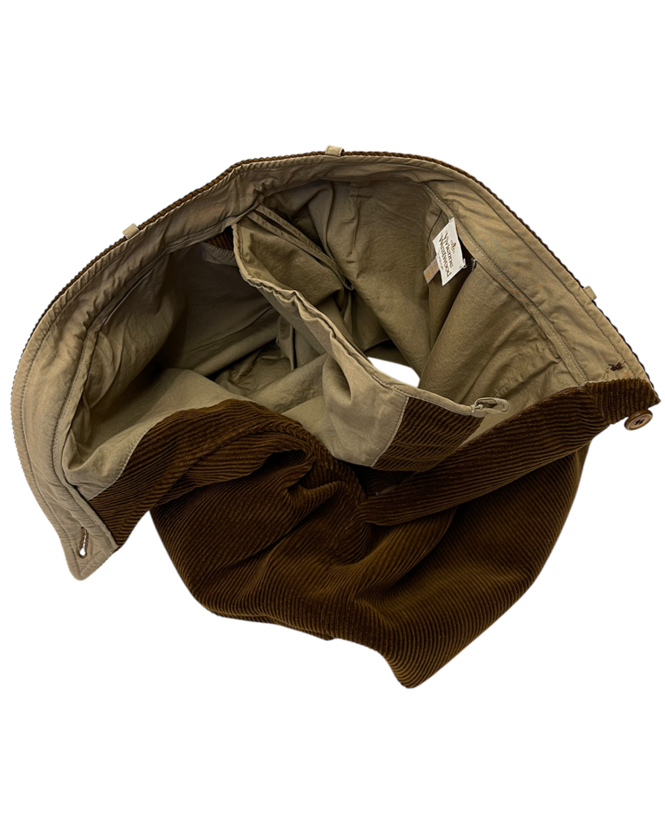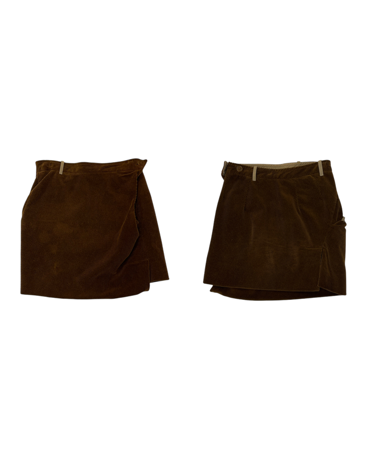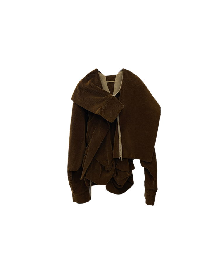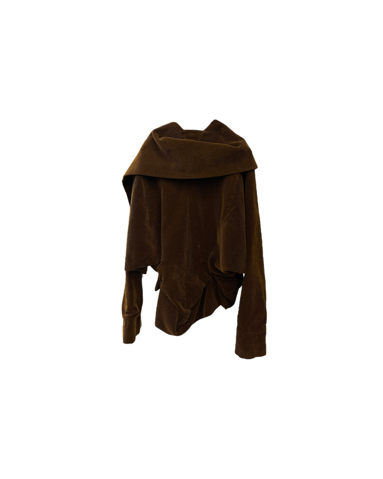 락 펑크 기반 브랜드 비비안 웨스트우드 2004년 가을 / 겨울 컬렉션 셋업입니다. 비대칭적인 랩 디자인과 구조적인 드레이핑이 매력적이며, 길게 늘어진 드로스트링이 언밸런스한 매력을 극대화 시켜줍니다.
