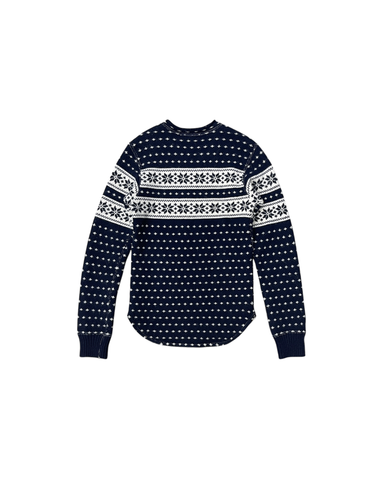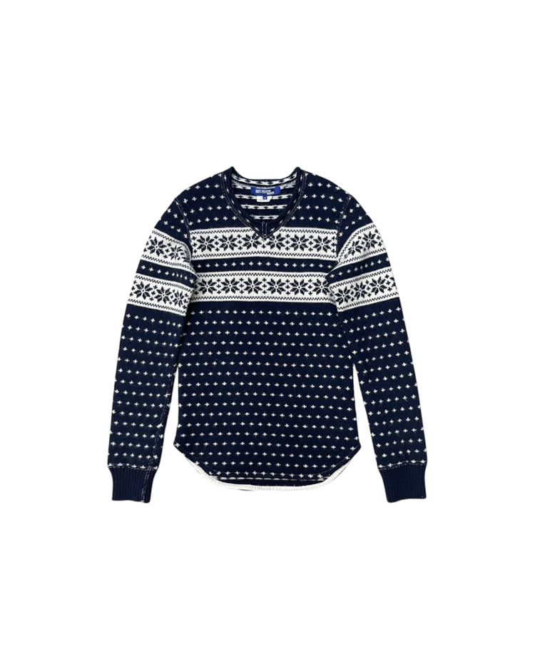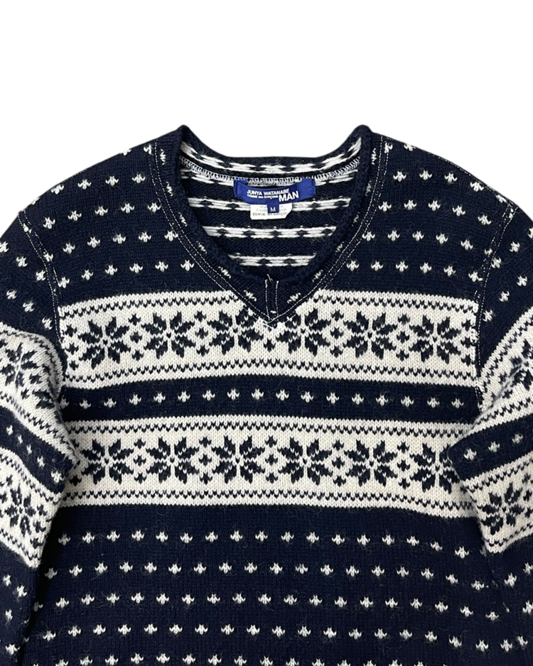 준야 와타나베의 제품입니다. 전 / 후면 기장이 다른 노르딕 패턴의 니트입니다.