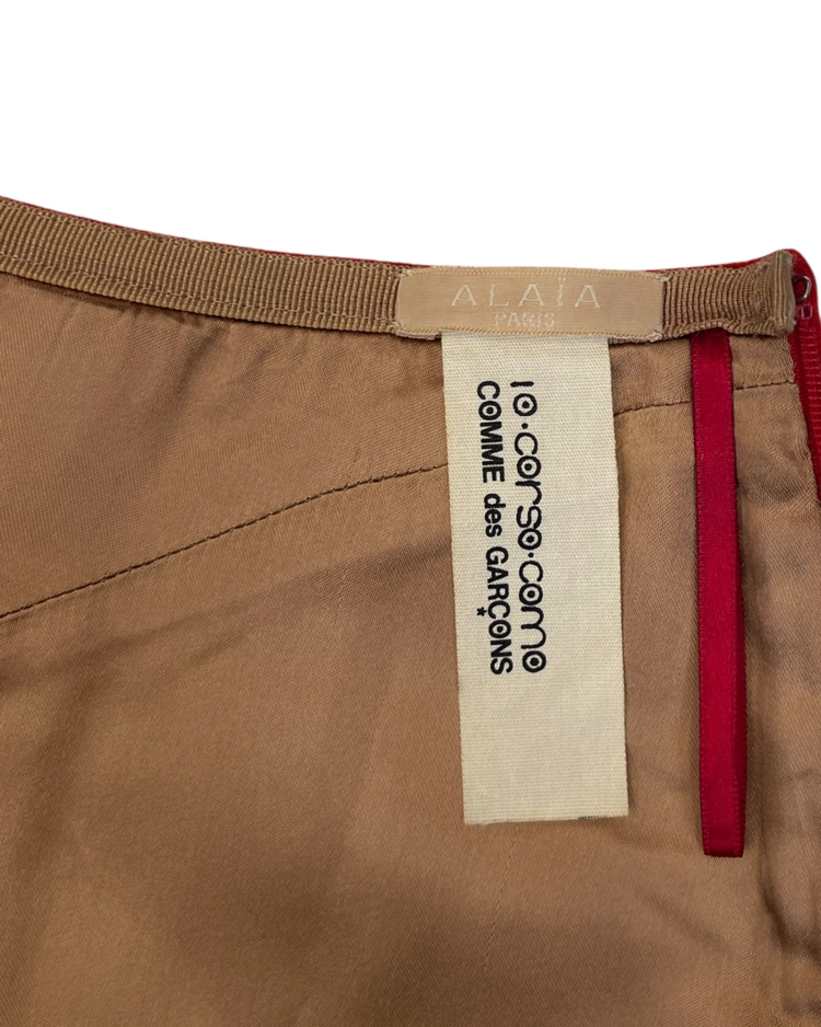 프랑스 브랜드 알라이아와 꼼데가르송의 콜라보 제품입니다. 튤립과 같은 형태가 특징이며 울 소재로 이루어져 있습니다. 전면부에 미세한 오염 있습니다.