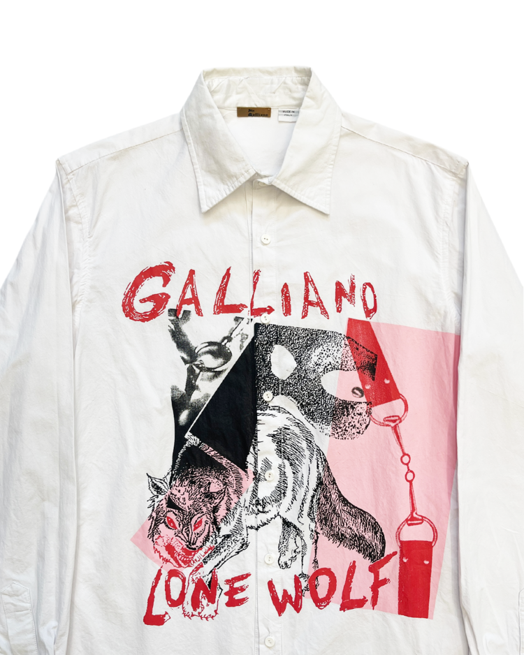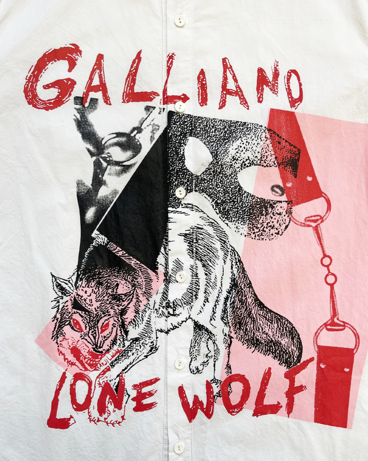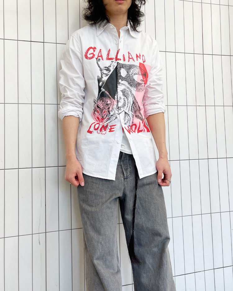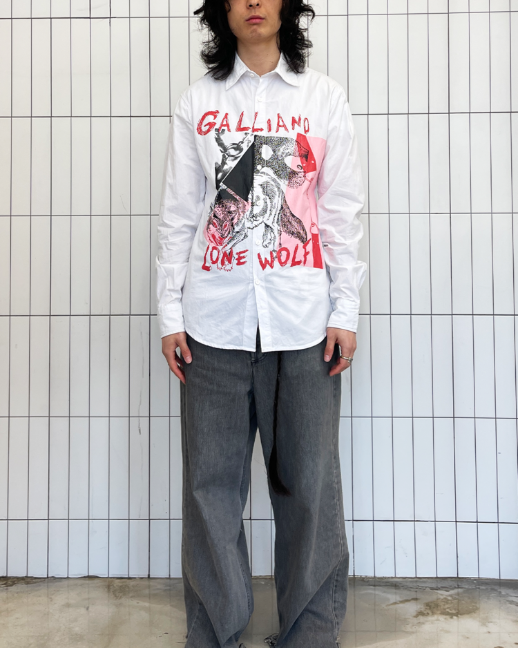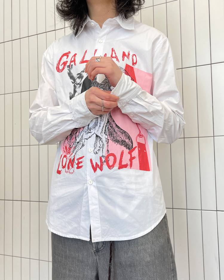전 마르지엘라의 디렉터 존 갈리아노의 브랜드 존 갈리아노의 셔츠입니다. 큰 프린팅이 매력적입니다. 카라 옆에 미세 오염 있습니다.