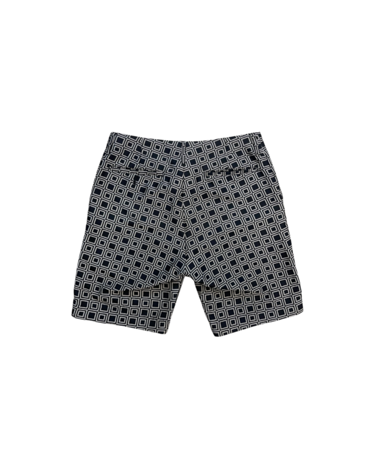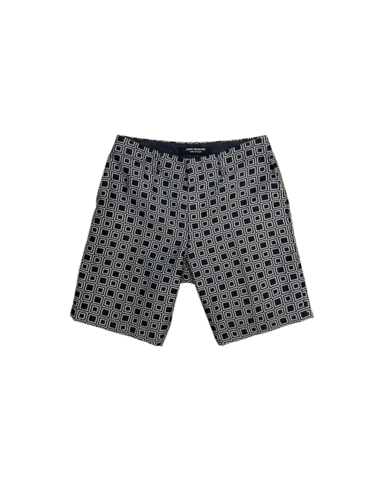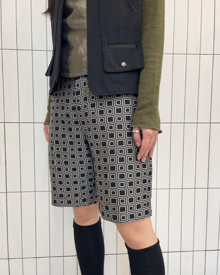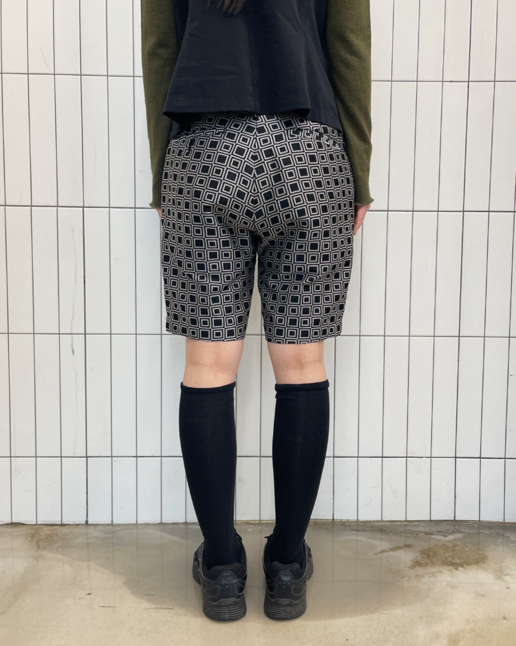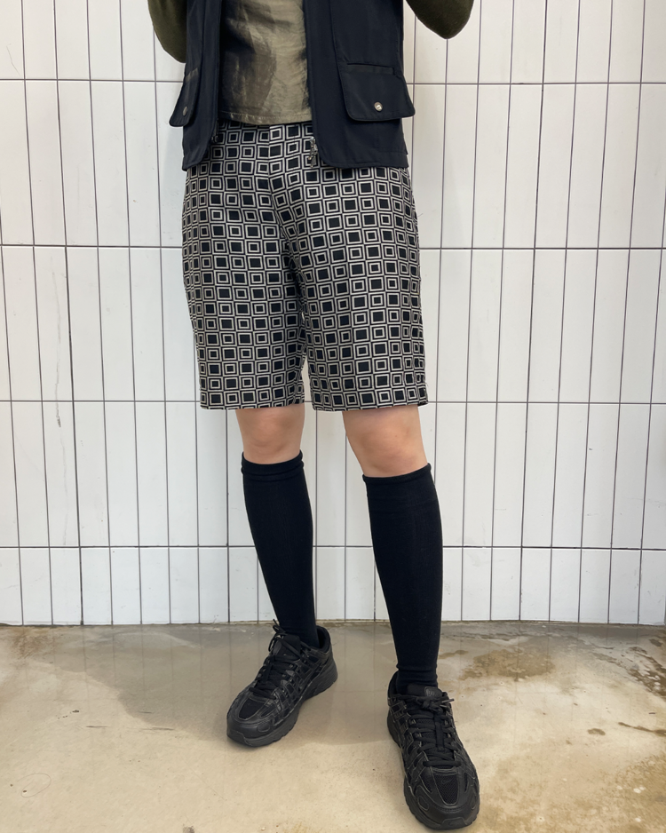 준야 와타나베의 쇼츠입니다. 기하학적인 패턴과 후면부의 구조가 조화를 이룹니다. 옆단에 미세한 오염 있습니다.