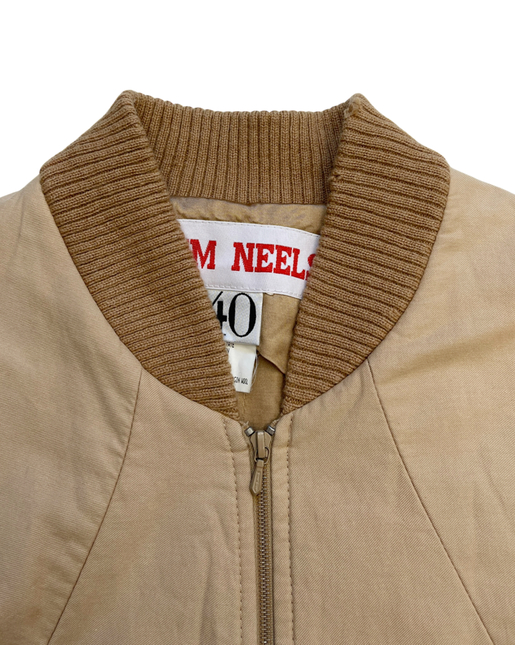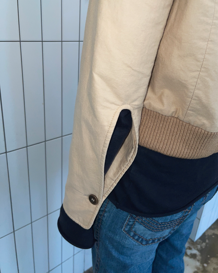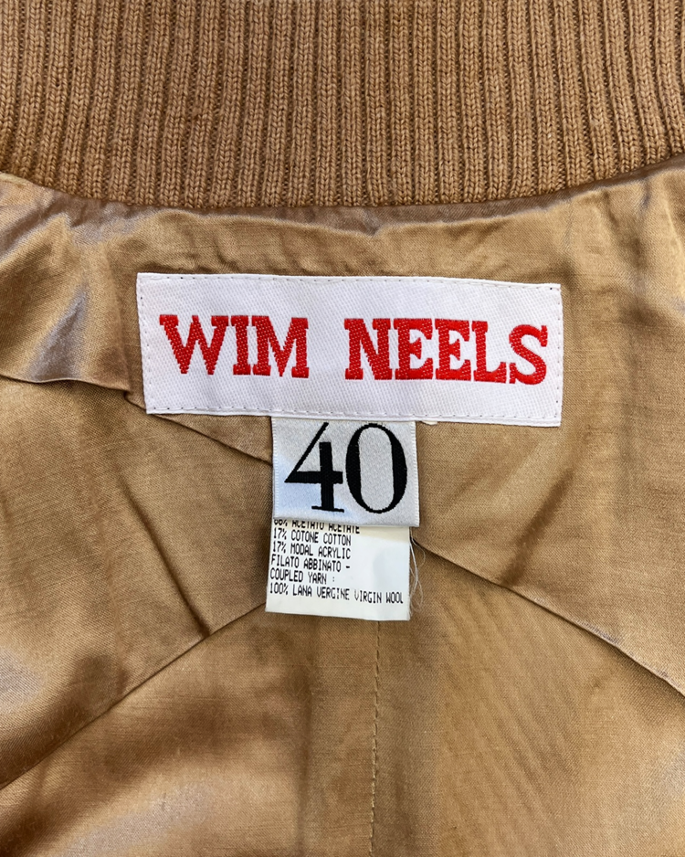 앤트워프 출신으로 현대적이고 고급스러운 스타일과 정교한 테일러링 추구하는 벨기에 브랜드 윔 닐스의 제품입니다. 소매의 디테일이 돋보입니다. 넥 라인 니트 부분에 약간의 울 풀림 있습니다.