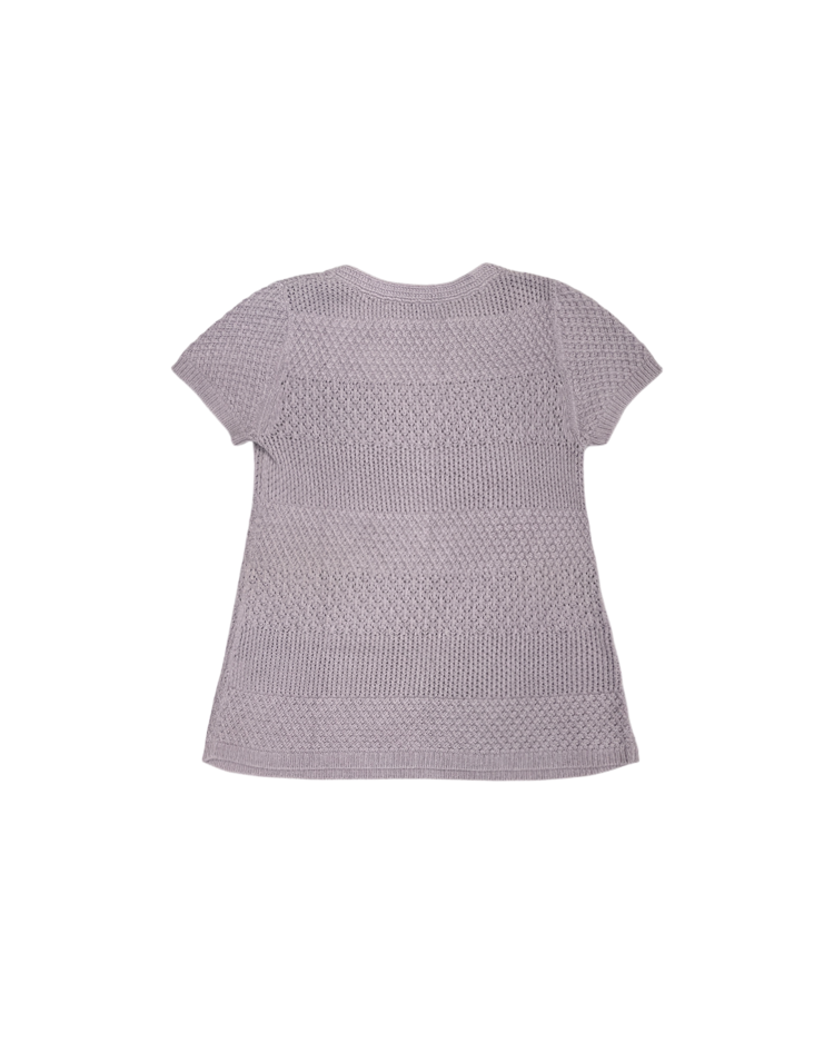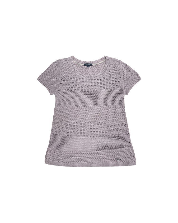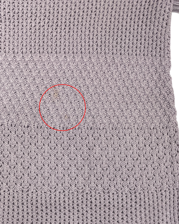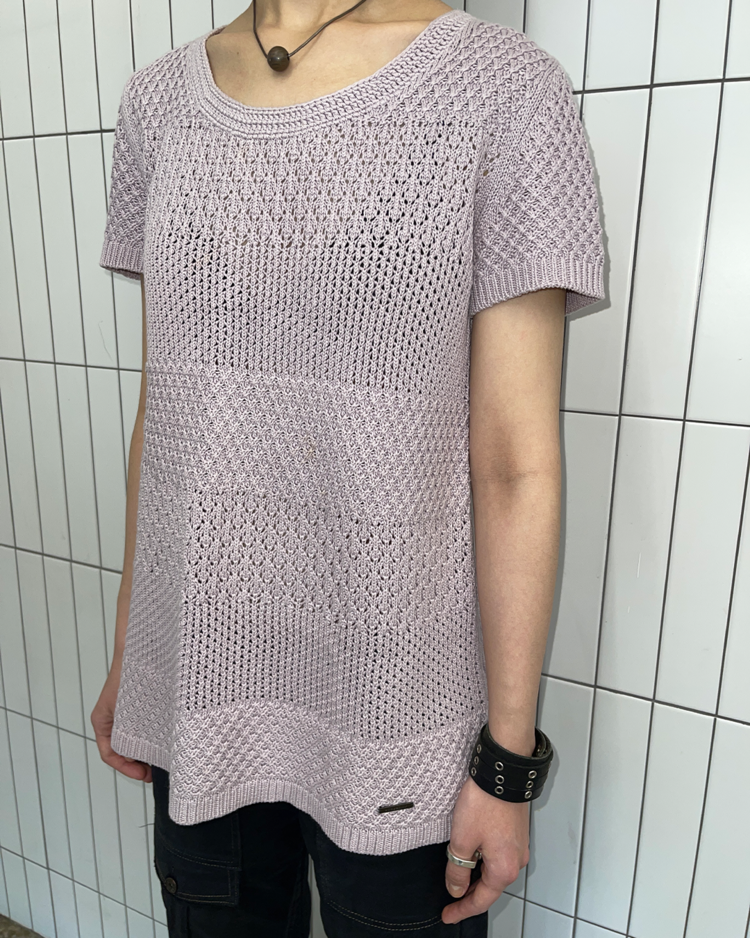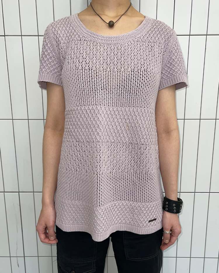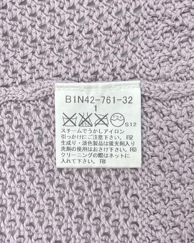 영국의 전통과 현대적 감성을 아우르는 럭셔리 브랜드 버버리의 제품입니다. 라벤더 컬러의 섬세한 크로셰 짜임과 다양한 텍스처 패턴이 돋보이며, 여름철 가볍게 착용하기 좋은 아이템입니다. 전면부에 미세한 오염이 존재합니다.