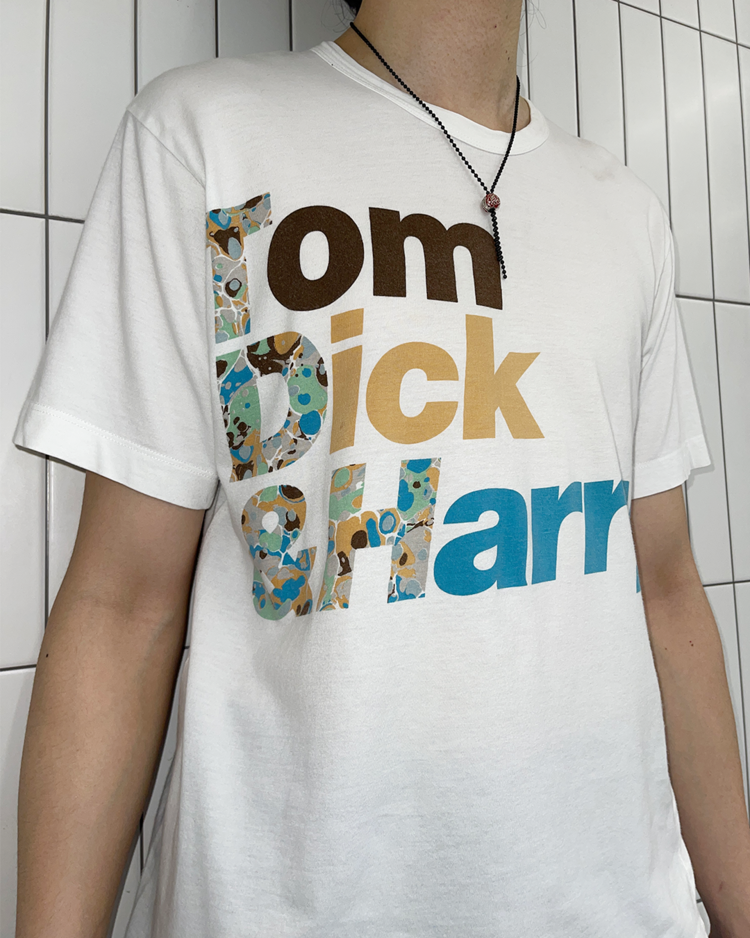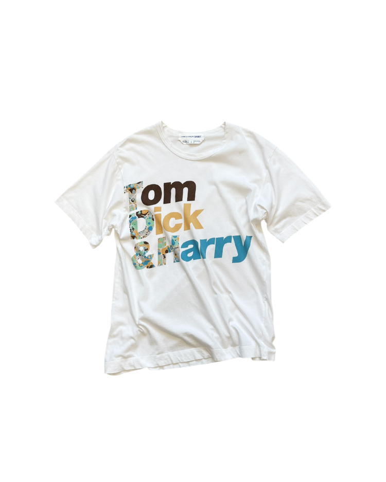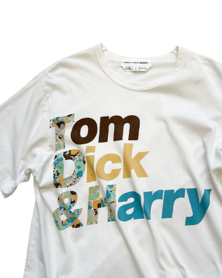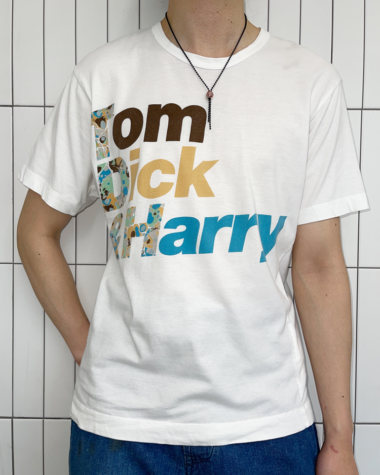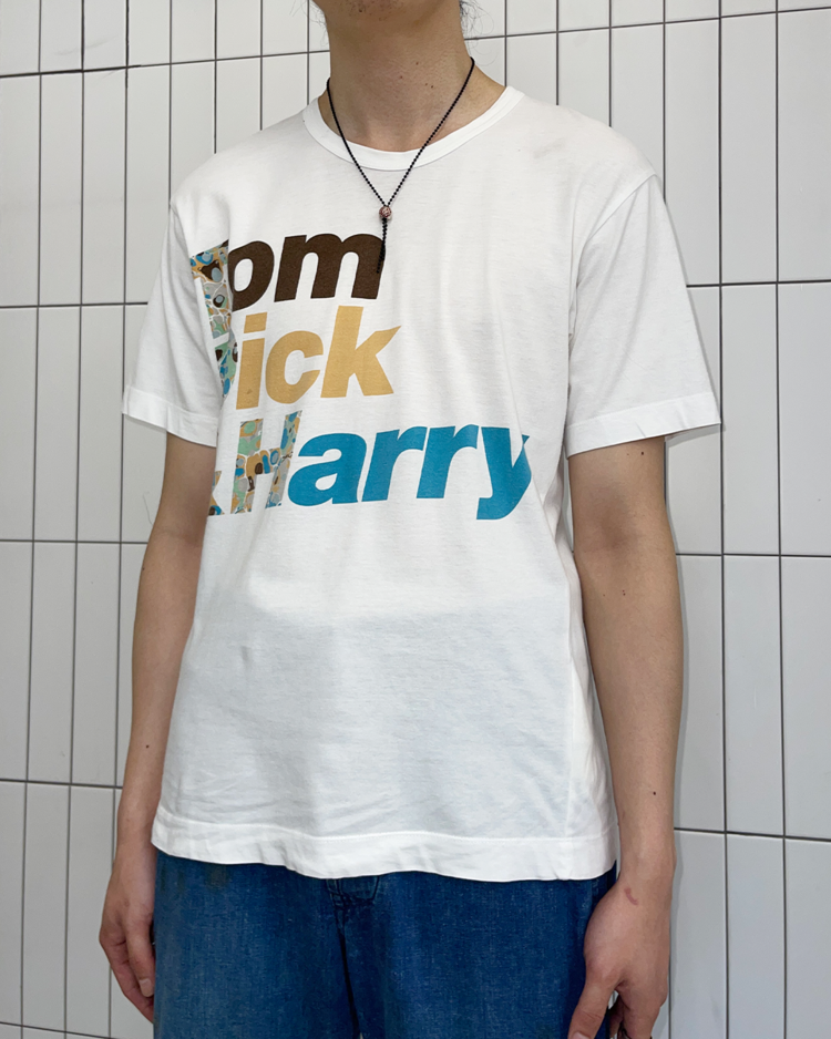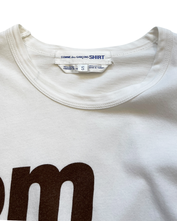 셔츠 전문 라인인 꼼데가르송 셔츠의 제품입니다. 프린팅이 매력적인 제품으로, 후면 어깨와 택 부근에 오염과 데미지가 있습니다.