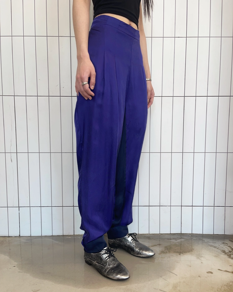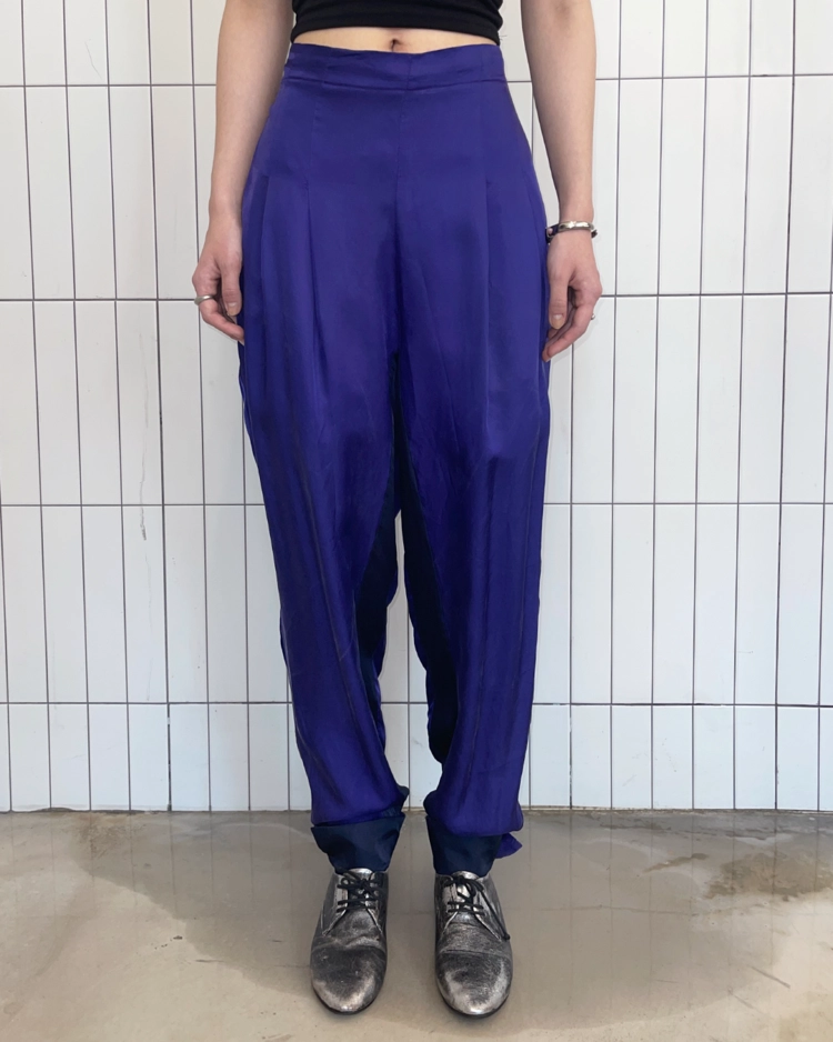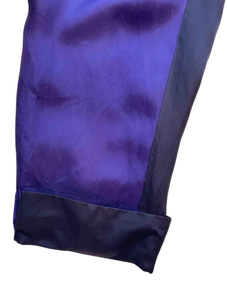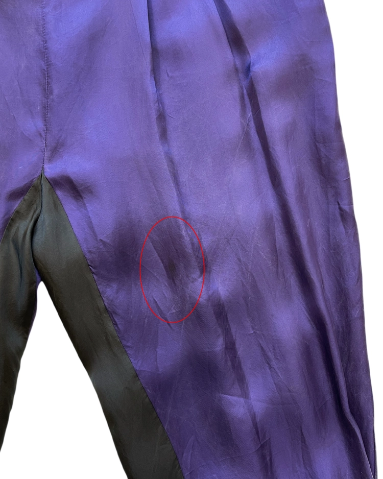 화려하고 개성 넘치는 장식으로 매니아층을 생성한 토가 풀라의 제품입니다. 오묘한 퍼플 컬러와 큐브라 원단으로 착용감이 편안합니다. 허리단과 허벅지 부근에 사용감이 있습니다.