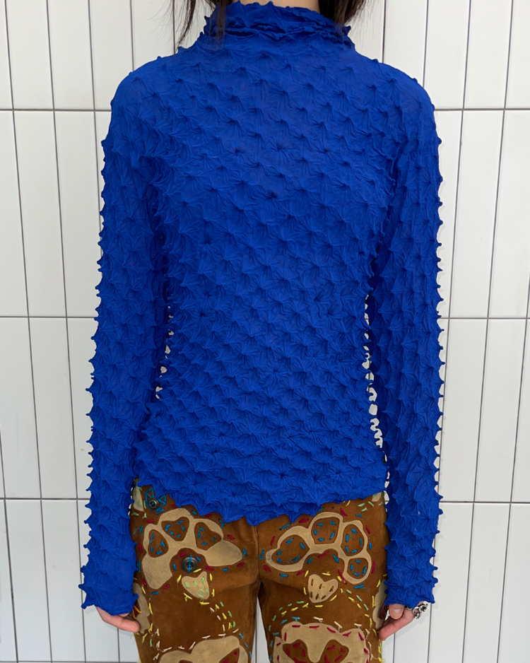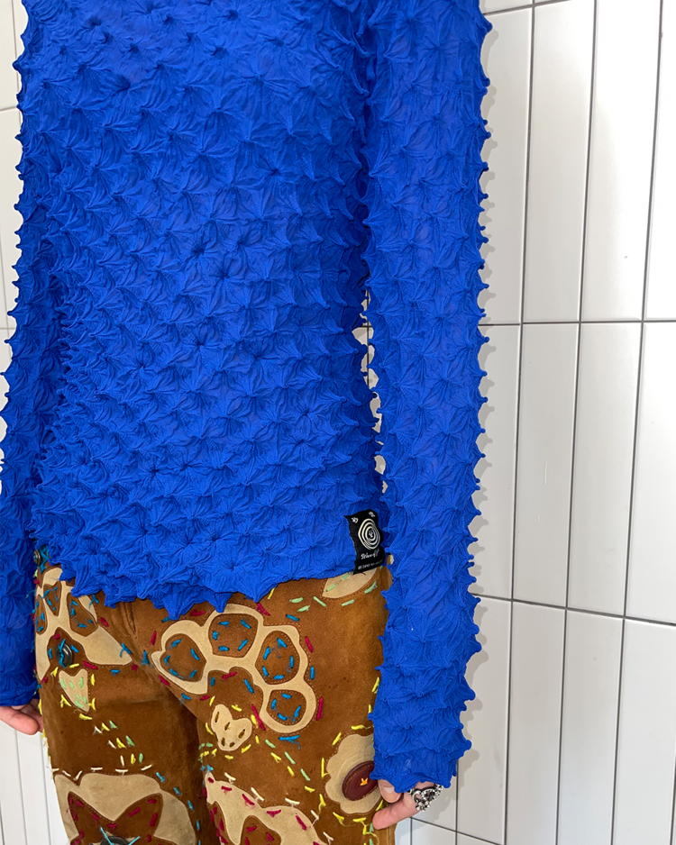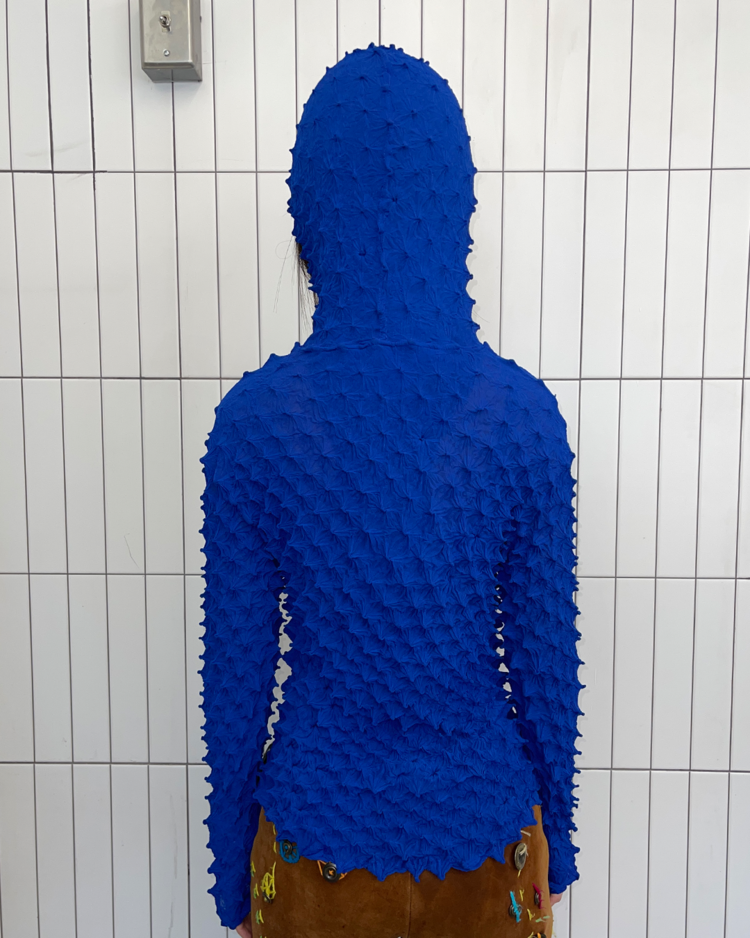 일본식 염색기법과 실험적인 실루엣으로 주목받는 브랜드 Wave of Sand의 제품입니다. 시보리 기법을 활용한 독창적인 텍스처와 스트레치감 있는 후디입니다.