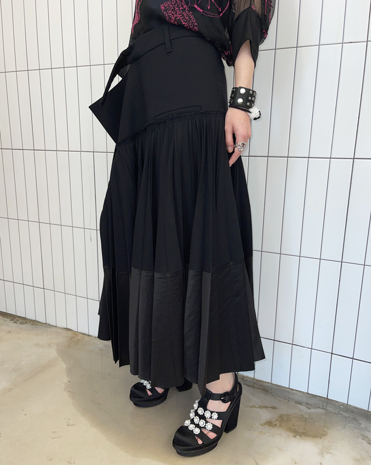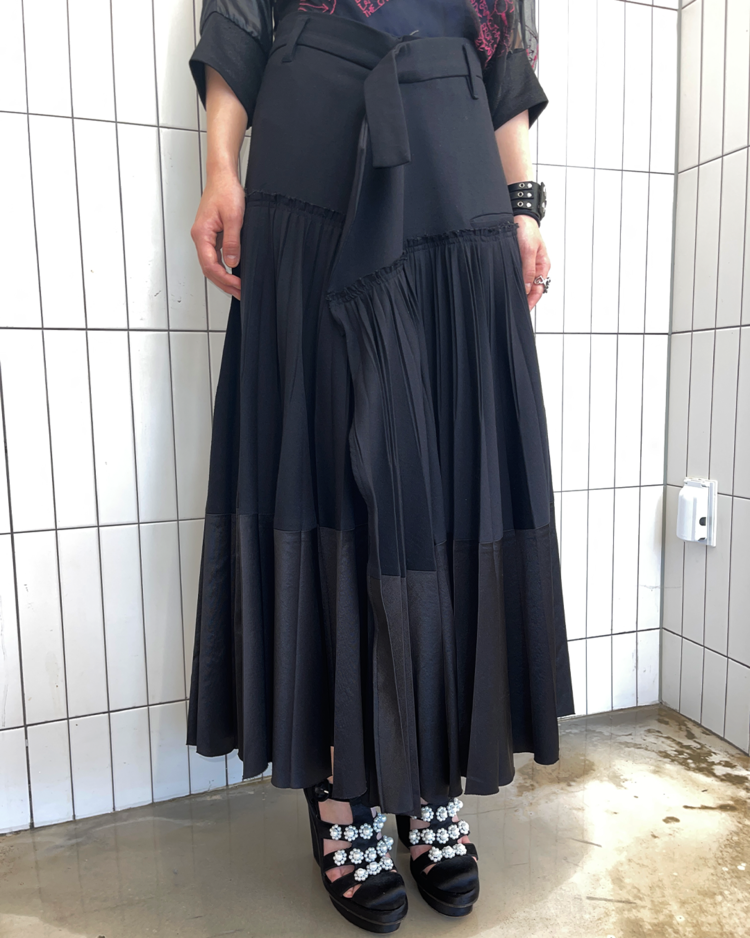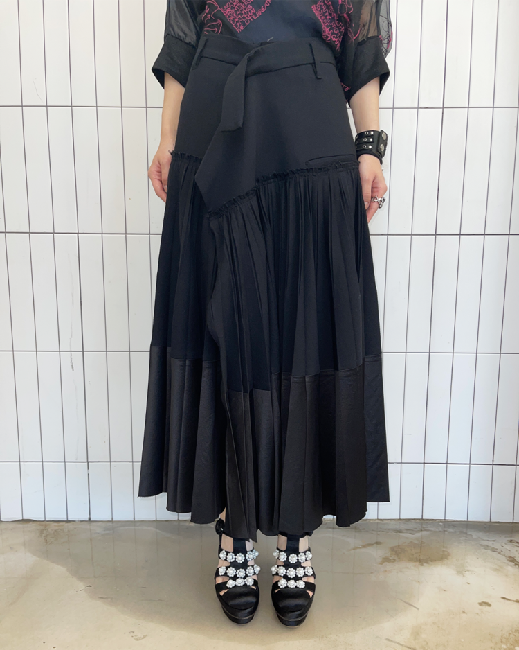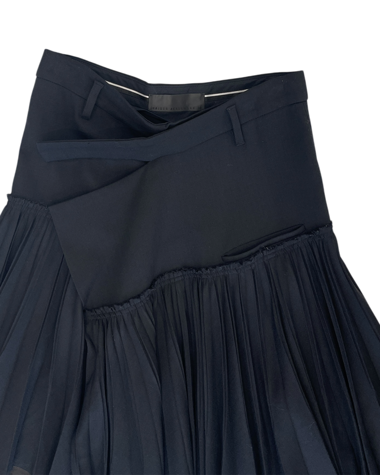 젠더리스한 미학과 예술적인 럭셔리 컨템포러리 브랜드 하이더 아커만의 제품입니다. 고급스러운 소재감과 섬세한 플리츠가 매력적인 스커트입니다.