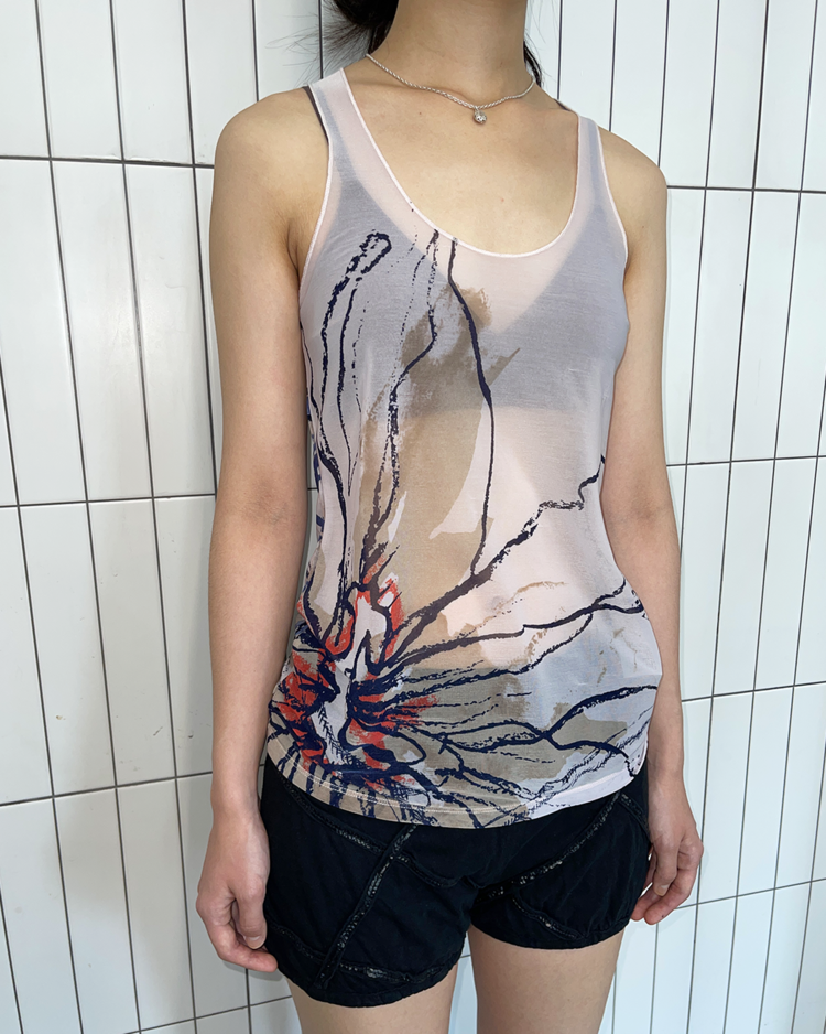 예술가인 유키노리 마에다가 전개하는 종합 예술 프로그램 코스믹 원더의 제품입니다. 스팽글 디테일로 키치함을 더해줍니다.