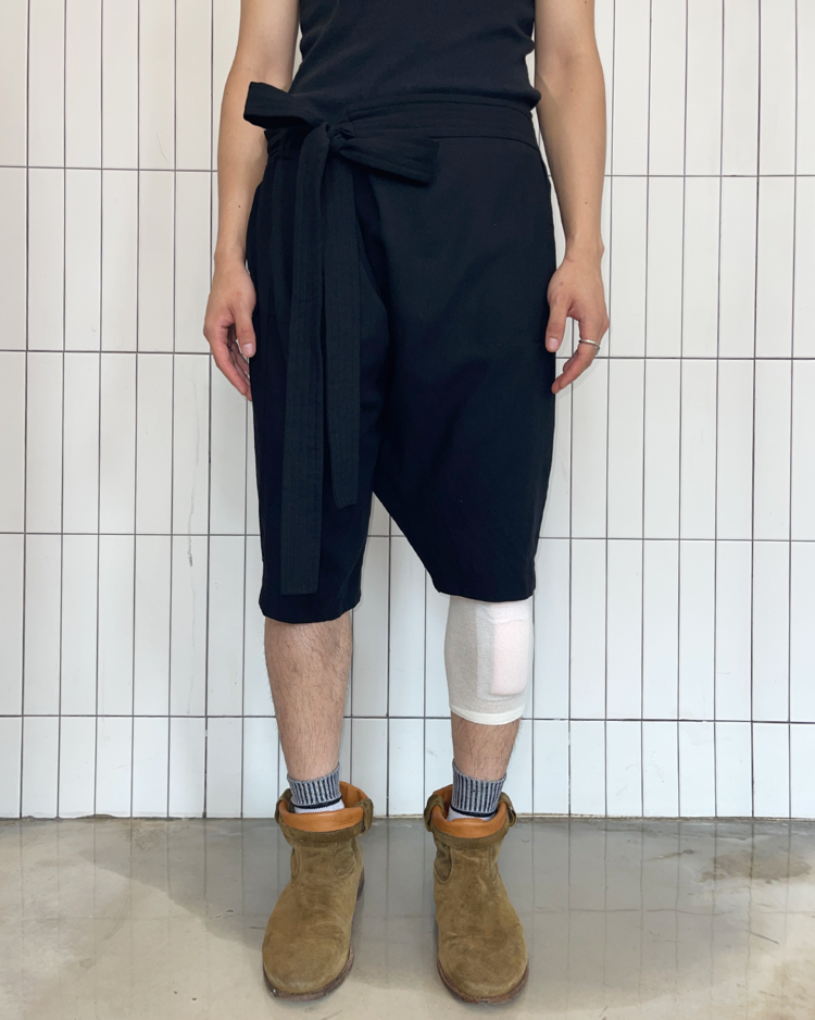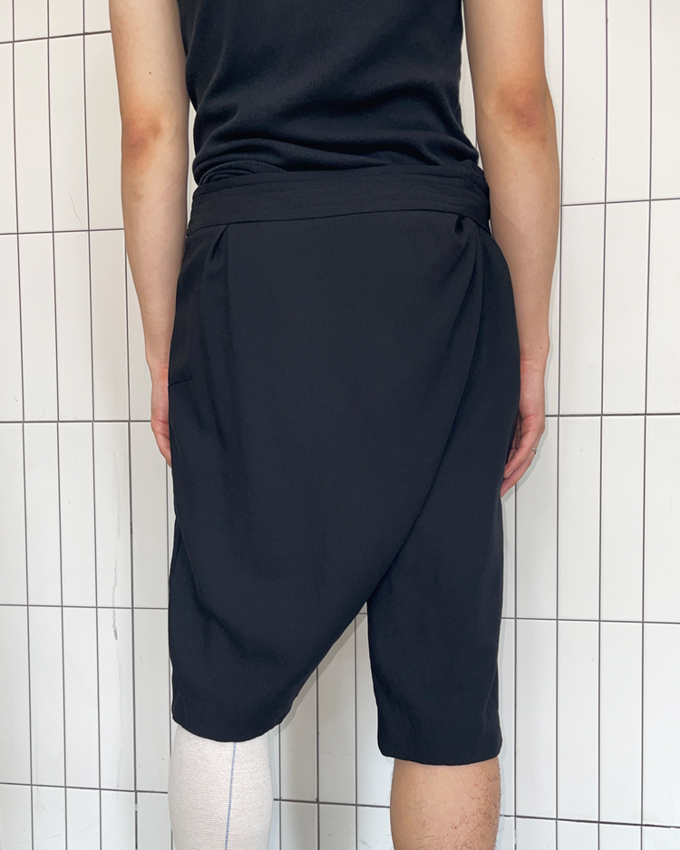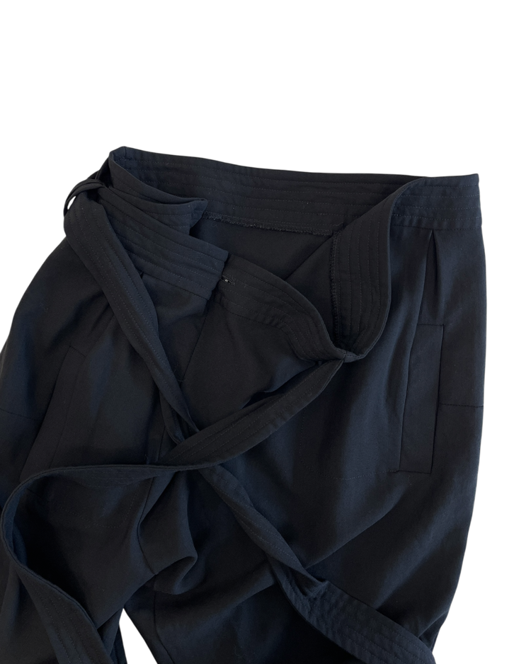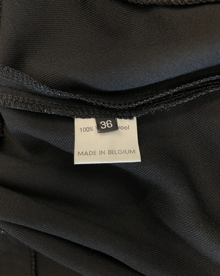 건축적인 실루엣으로 테일러링을 전개하는 벨기에의 브랜드 브루노 피터스의 제품입니다. 벨트로 여며 랩 스타일로 연출할 수 있는 디자인이 특징입니다.