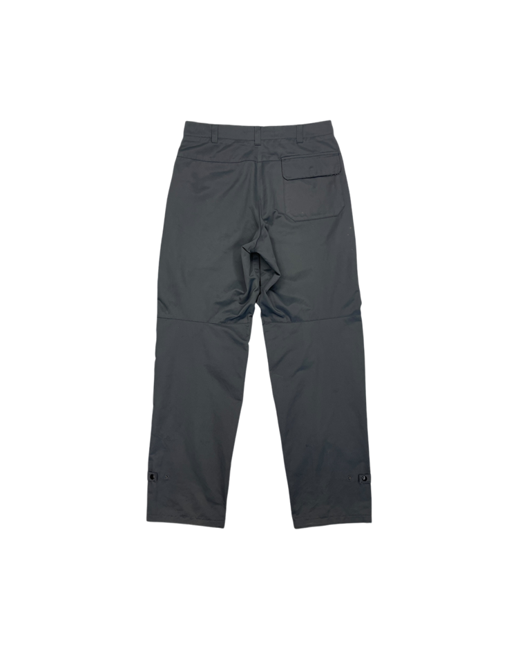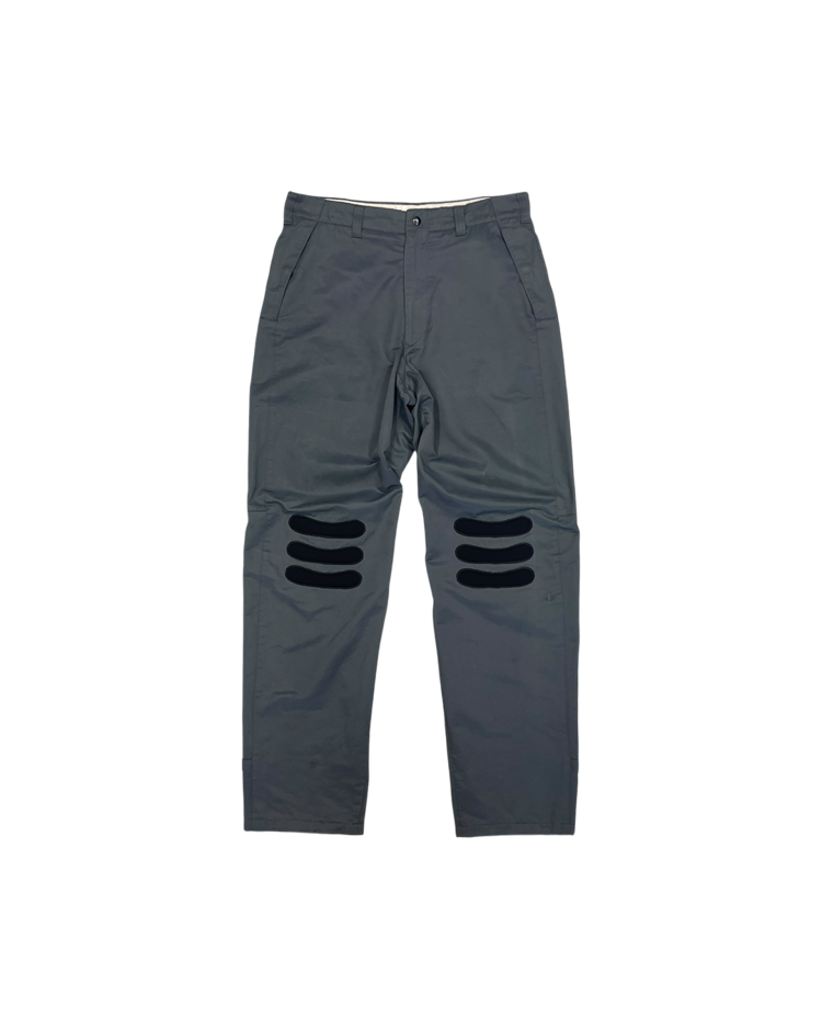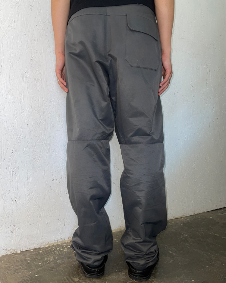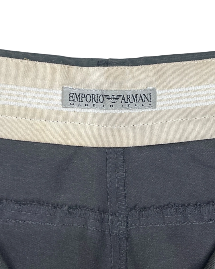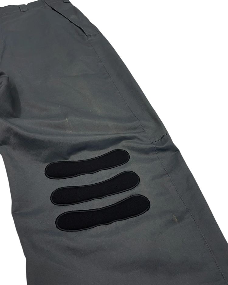 90년대 미니멀한 실루엣과 기능적 디테일을 결합한 스포티한 아이템들을 선보이며 젯셋 라이프스타일을 제안했던 이탈리아 럭셔리 브랜드 엠포리오 아르마니의 아이템입니다. 무릎에 오목한 패드형 패널을 배치한 바이커 팬츠로, 강한 그래픽 포인트를 부여한 디자인과 뒤면 플랩 포켓과 밑단 버튼 스트랩이 매력적입니다.