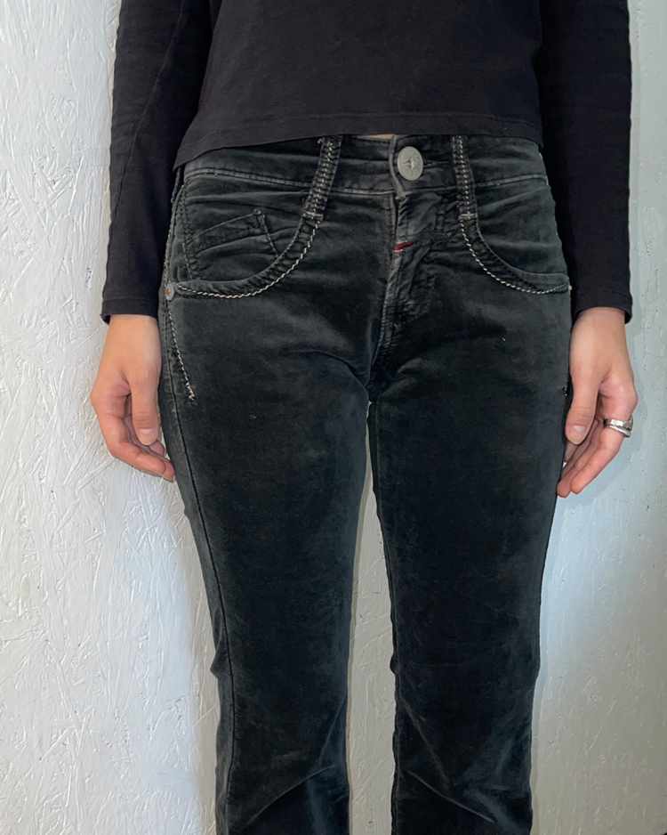 유러피안 캐주얼 브랜드 마리떼 프랑소와 저버의 90년대 부츠컷 팬츠입니다. 세미 플레어 핏의 팬츠이며, 소재감과 전 / 후면 스티치 디테일이 매력적입니다.