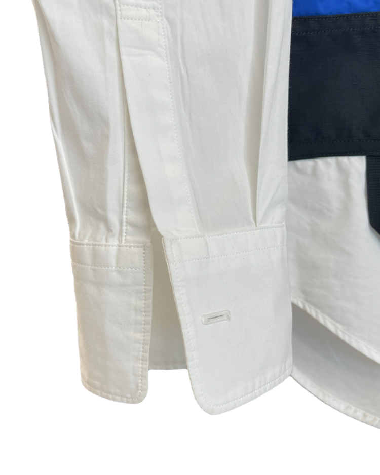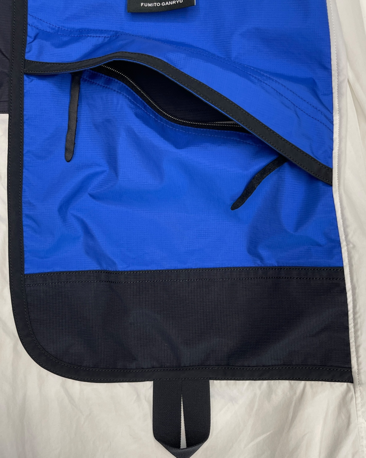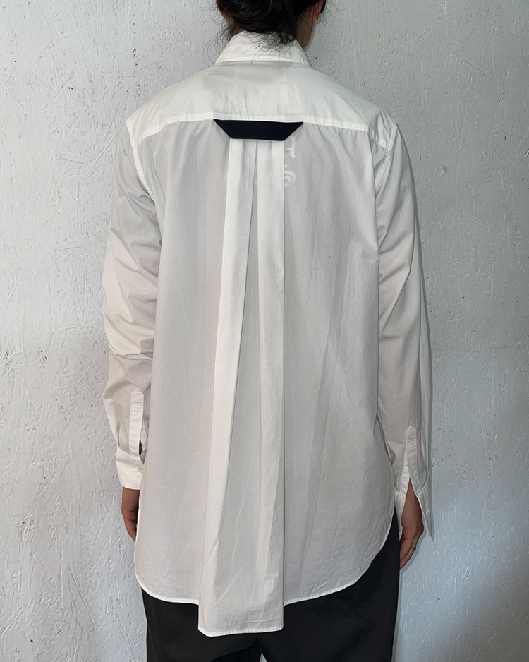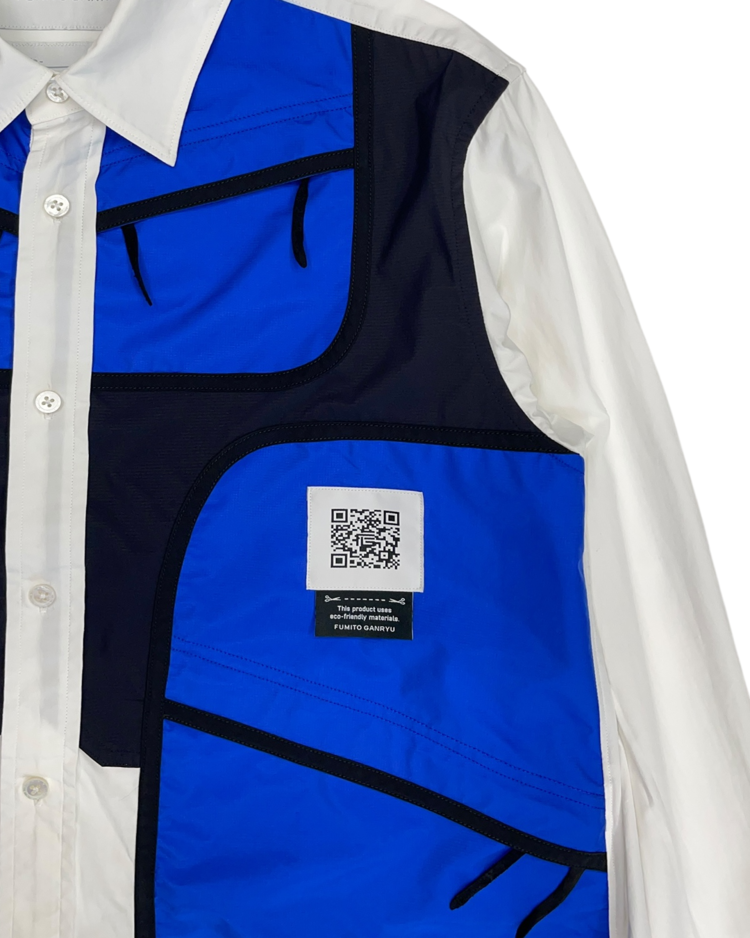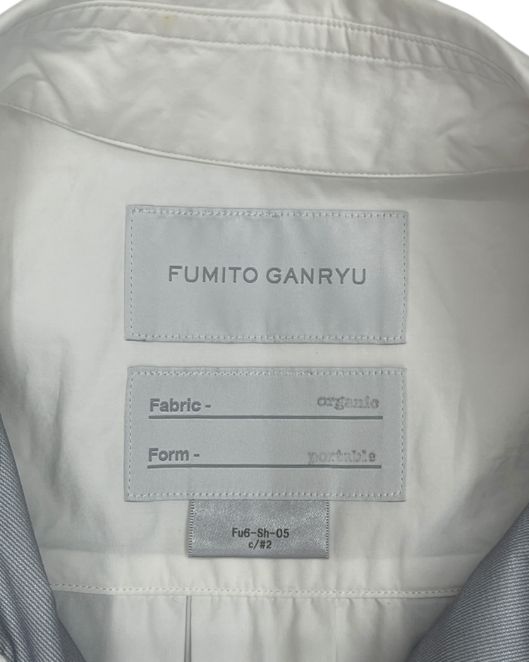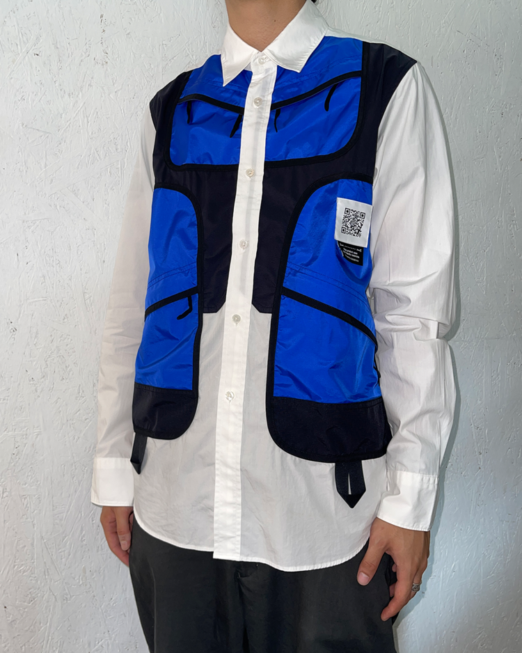 기능성과 실험적 패턴, 여유로운 실루엣을 특징으로 전개되는 후미토 간류의 셔츠입니다. 21AW 시즌, 대형 포켓과 경량 소재를 사용해 도시와 아웃도어를 넘나드는 실용성을 담은 포터블 셔츠입니다. 우측 소매 버튼이 탈락됐습니다.