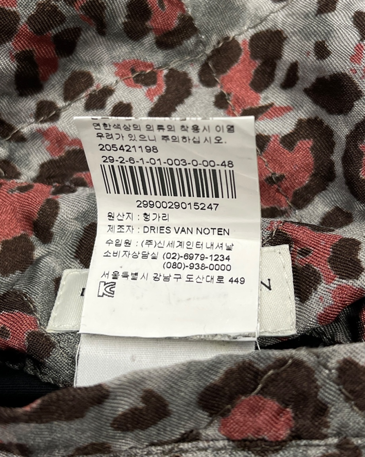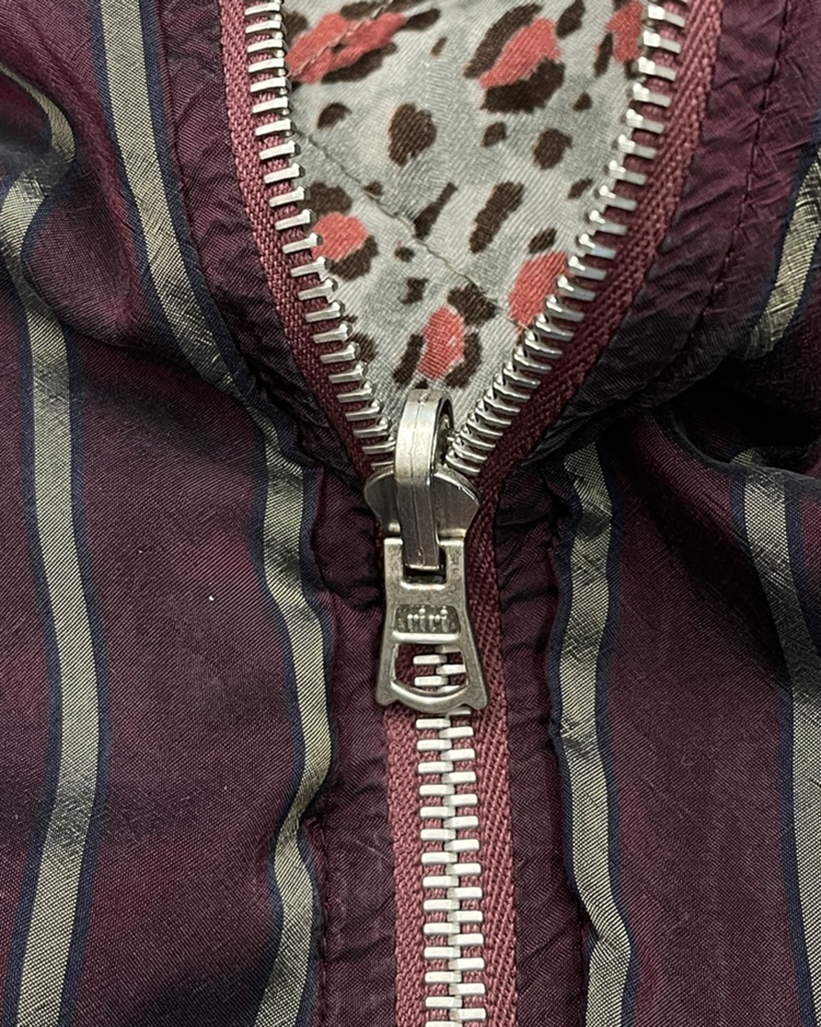 앤트워프 식스 중 한 명인 드리스 반 노튼의 제품입니다. 한쪽은 버건디 컬러 베이스에 그레이 스트라이프 패턴이, 다른 한쪽은 그레이 바탕에 레드·블랙 컬러의 레오퍼드 패턴이 적용된 리버시블 블루종입니다. 스트리트와 하이패션 무드를 동시에 연출할 수 있는 아이템입니다.