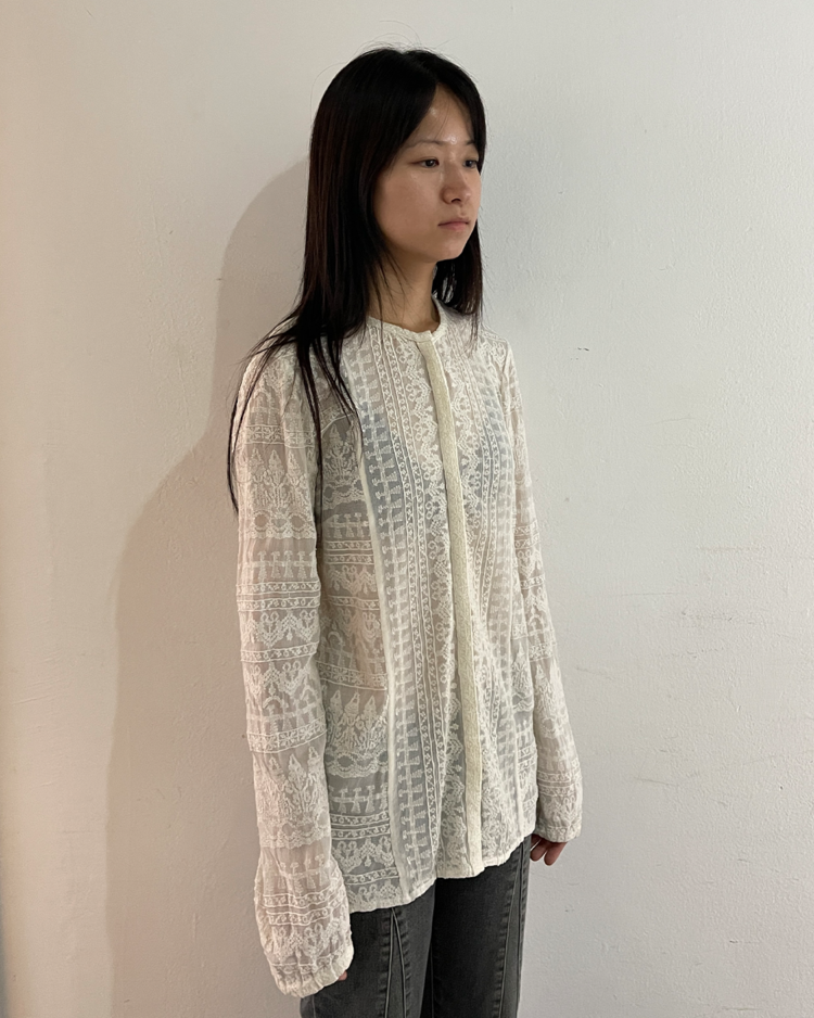 Cream Sheer Embroidered Blouse