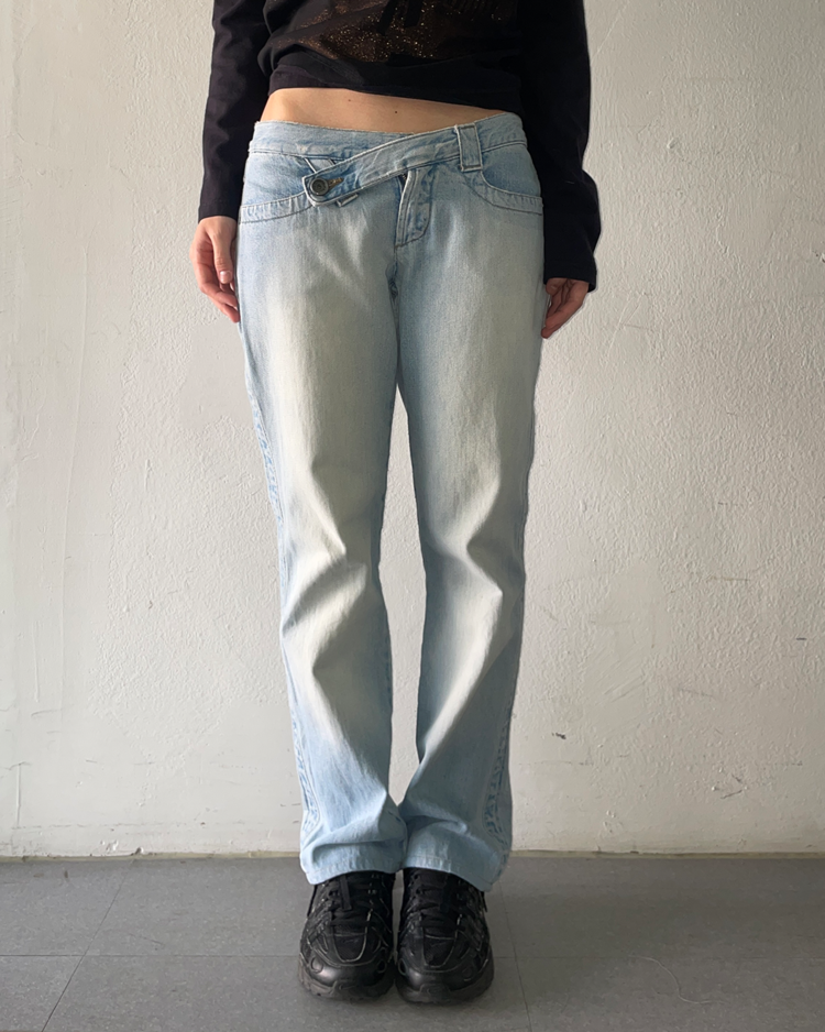 스포츠와 패션 결합의 선구자로 불리는 앤트워프 식스 중 한 명인 딕 비켐버그의 제품입니다. 자연스러운 페이딩 워싱이 빈티지한 무드를 연출하며, 과감한 비대칭 허리 디테일이 실험적이고 독창적인 브랜드의 정체성을 드러냅니다.