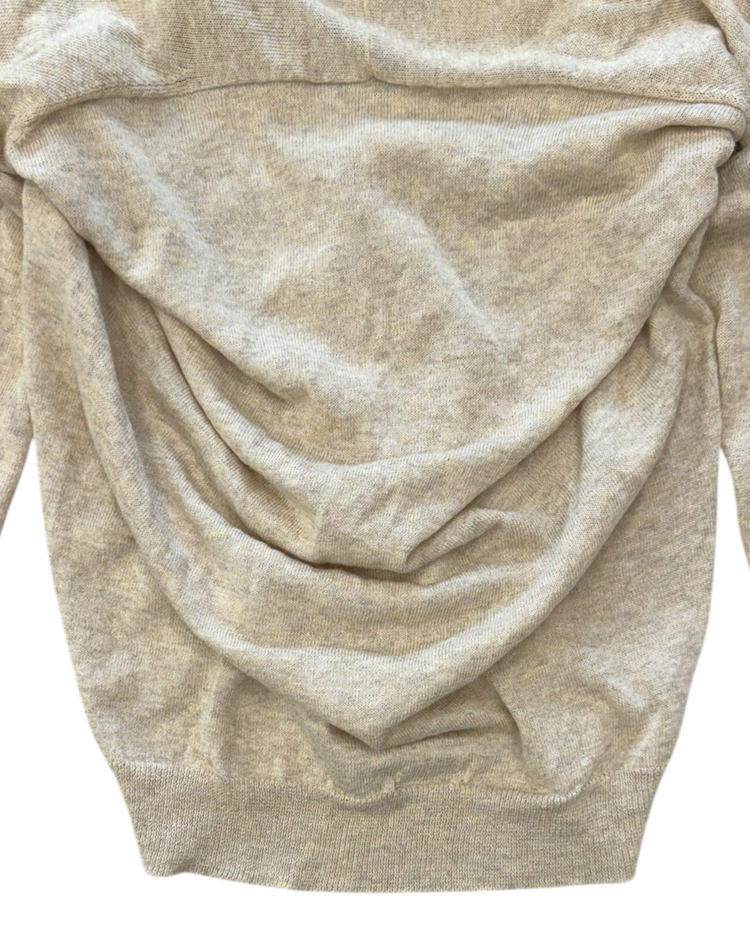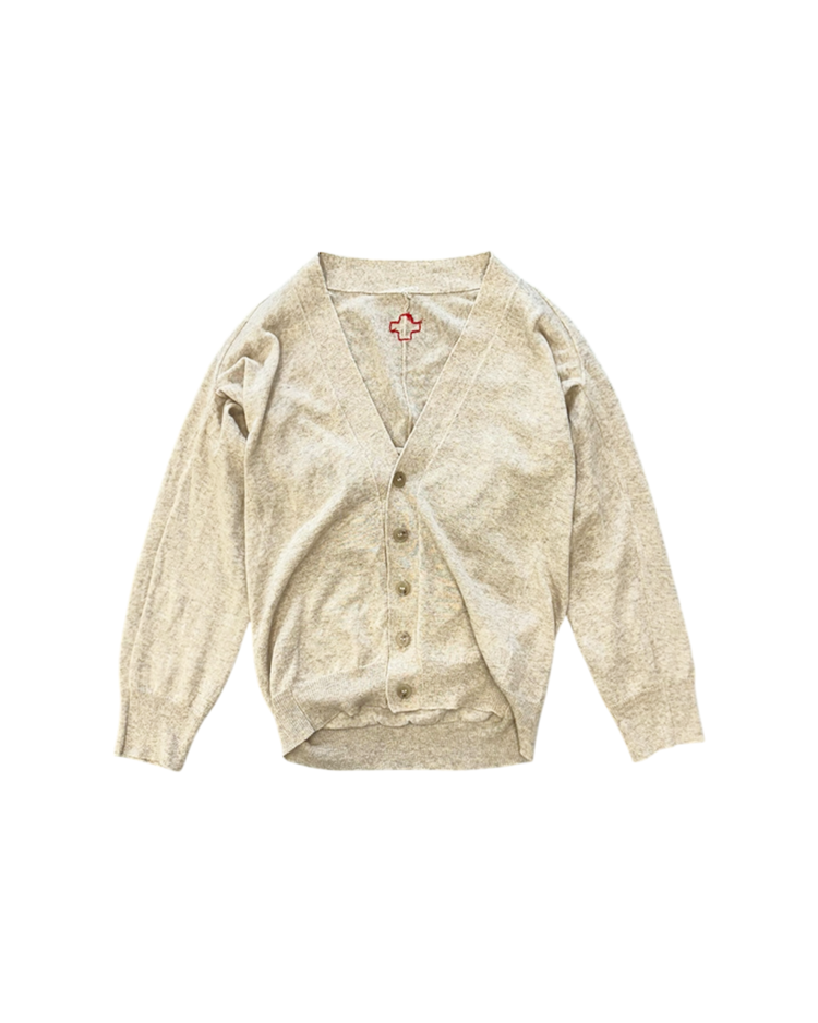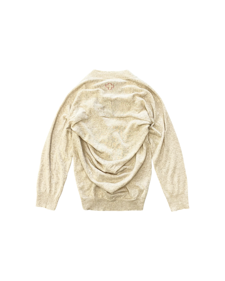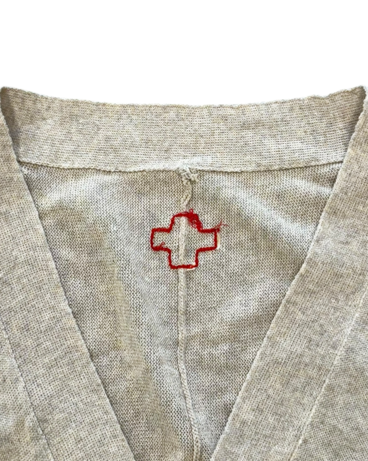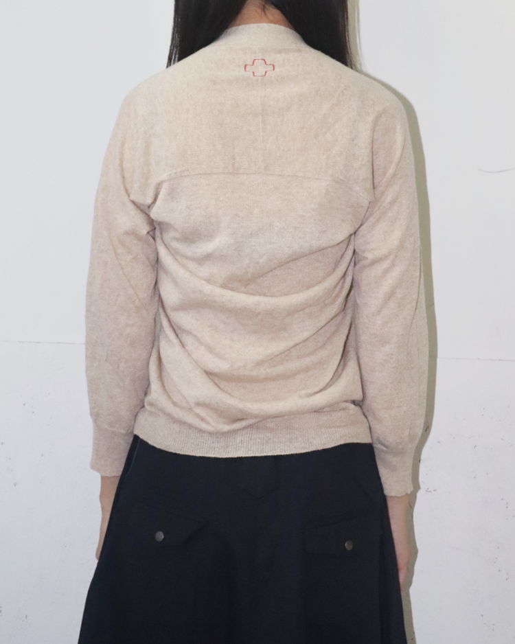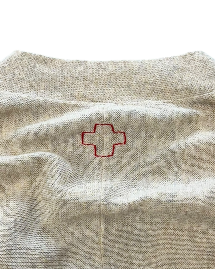 레드 크로스 로고를 시그니처로 활용하며 유니폼, 밀리터리 요소 등을 모던하게 재해석하는 디자인으로 알려진 벨기에 출신의 디자이너 듀오 브랜드 A.F 반데보스트의 제품입니다. 전면은 간결하고 단정한 V-넥 버튼 클로저로 마무리했으며, 후면은 여유롭게 흐르는 볼륨감으로 구조적인 실루엣을 연출했습니다. 브랜드 특유의 실험적인 터치를 보여주는 피스입니다.
