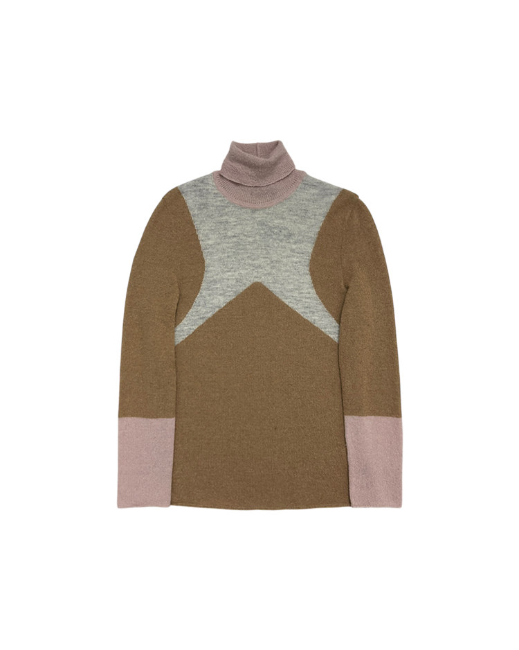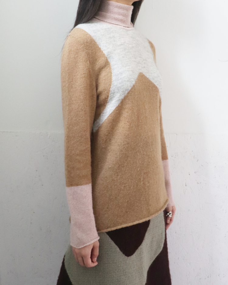 영국의 펑크 문화와 미국의 팝 컬처, 일본의 문화를 결합한 준 타카하시의 브랜드 언더커버의 제품입니다. 모헤어 터틀넥 니트로, 컬러 블록 디자인이 돋보이는 제품입니다. 부드러운 촉감의 알파카 혼방 소재로 제작되어 따뜻하면서도 가벼운 착용감이 특징입니다.