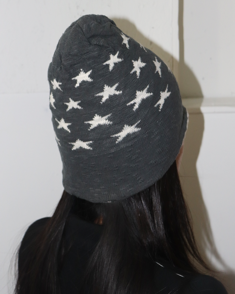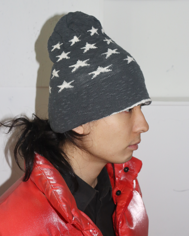 장인 기반의 니팅 기술과 개성 있는 실루엣으로 많은 팬층을 확보하며, 일본을 대표하는 모자 전문 브랜드로 자리 잡은 ca4la의 제품입니다. 차콜 그레이 바디에 스타 패턴을 더한 니트 햇으로, 자연스럽게 내려오는 슬라우치 핏이 매력적입니다.