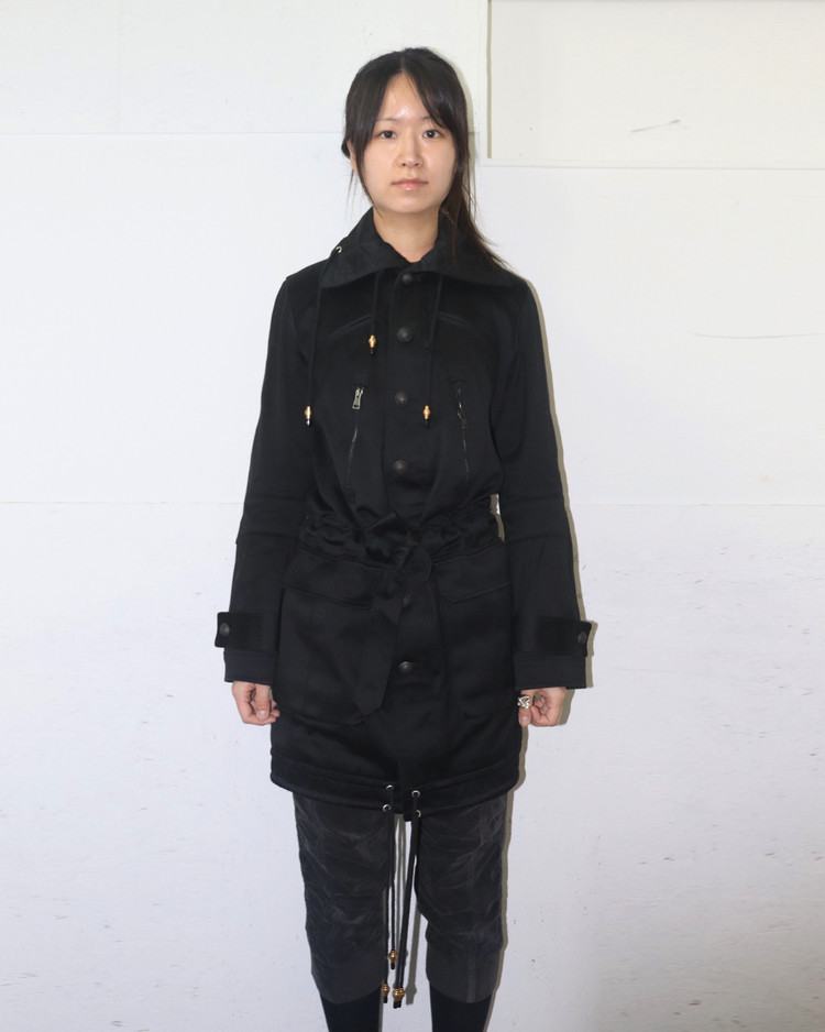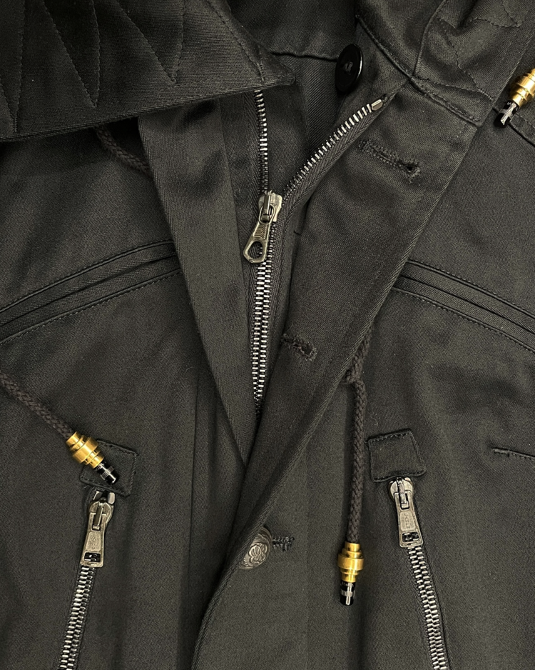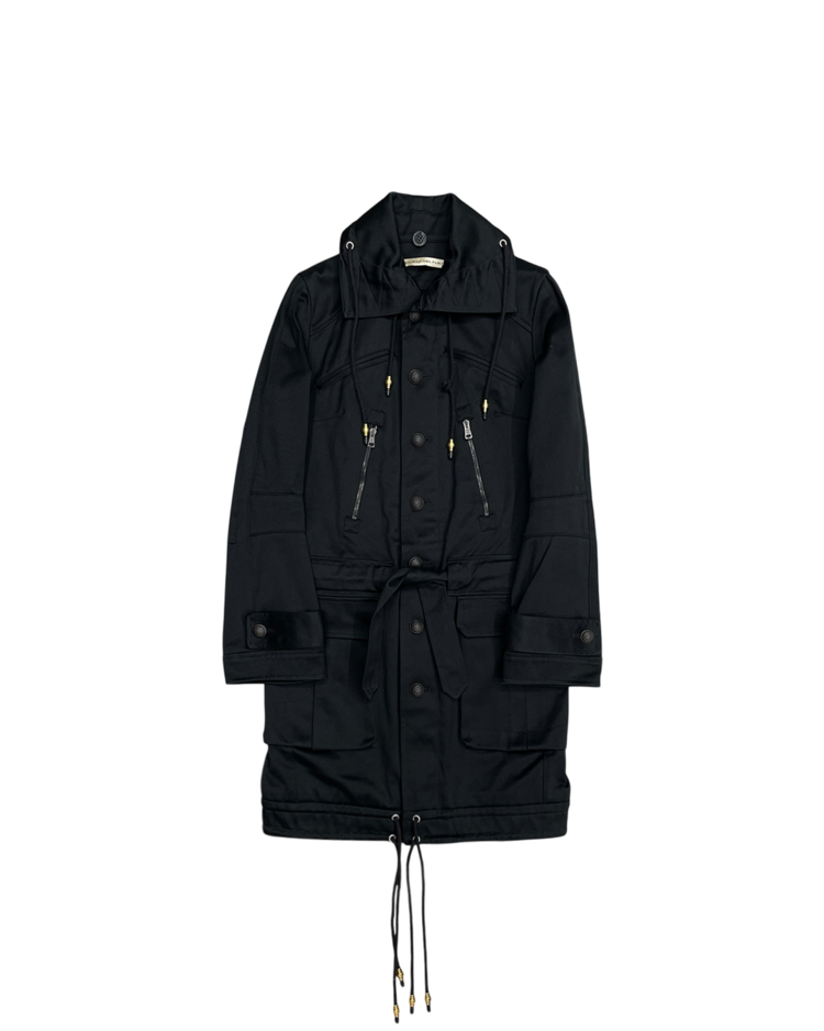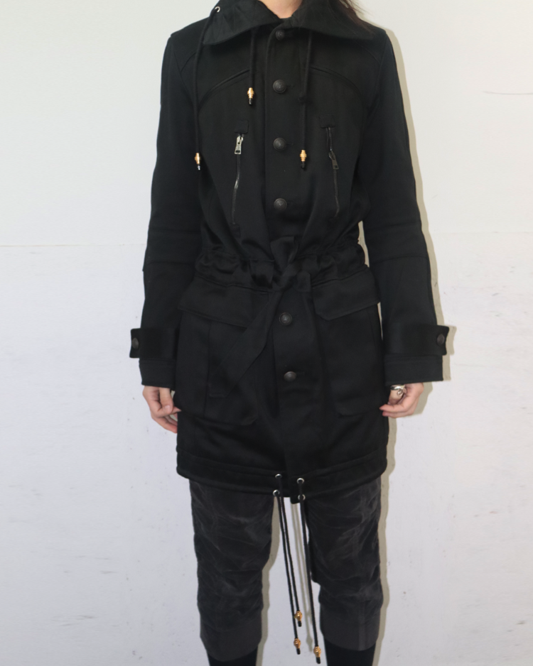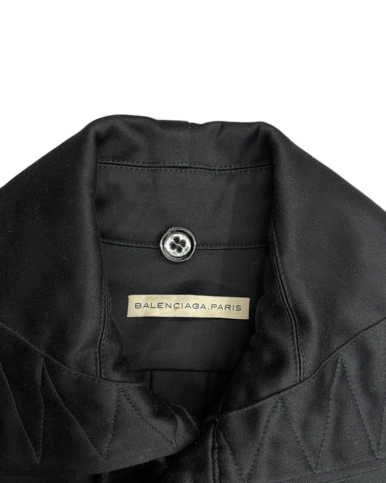 니콜라 게스키에르가 디렉팅하여 미래지향적인 건축적 실루엣이 강조된 발렌시아가의 제품입니다. 06AW 시즌의 밀리터리 코트로, 세부적인 디테일이 매력적인 제품입니다.