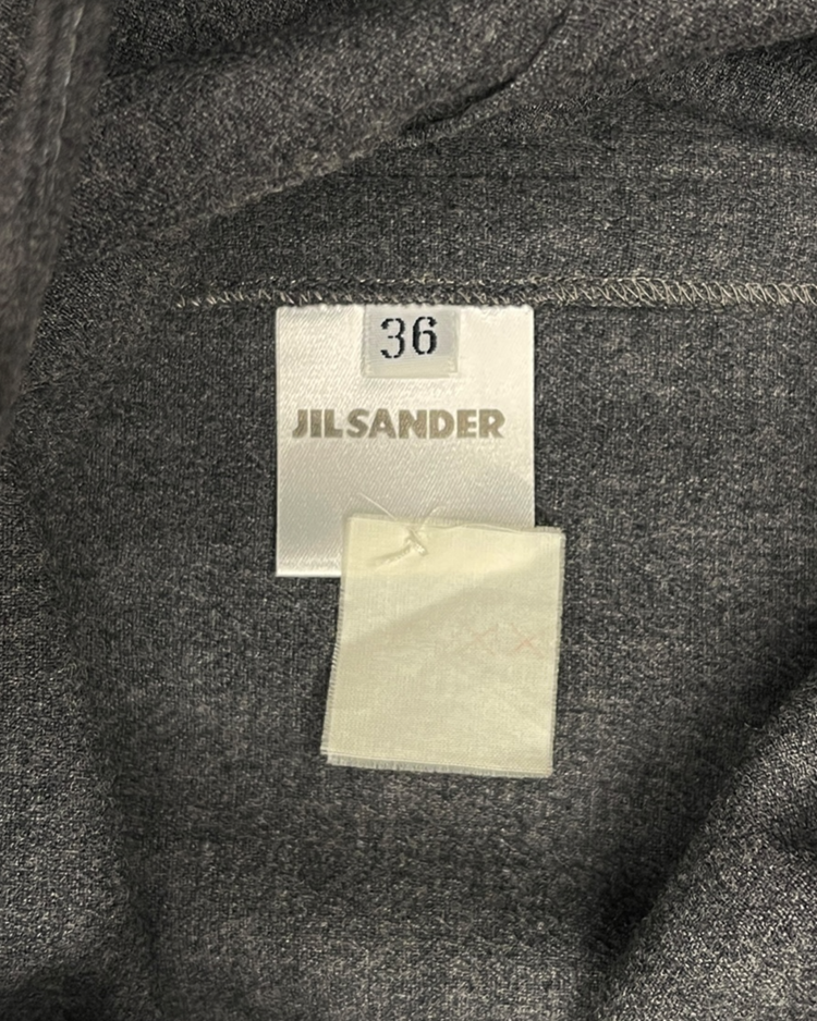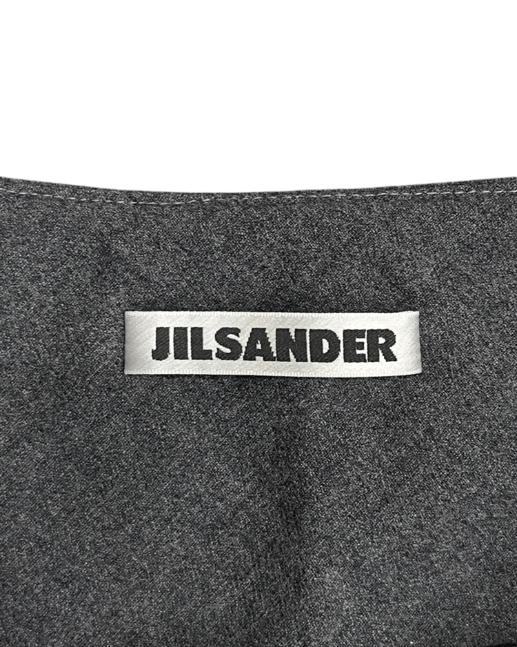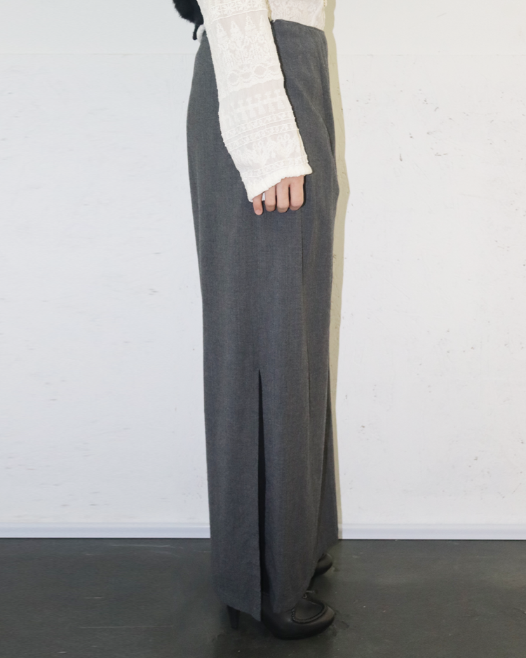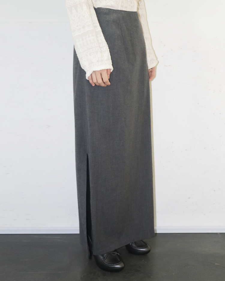 실용성과 정제된 디자인을 강조하며, 미니멀리즘을 대표하는 질 샌더 제품입니다. 고급 울 소재로 제작된 롱 스커트로, 긴 기장과 사이드 슬릿 밑단에 샌더의 특징이 부각됩니다.