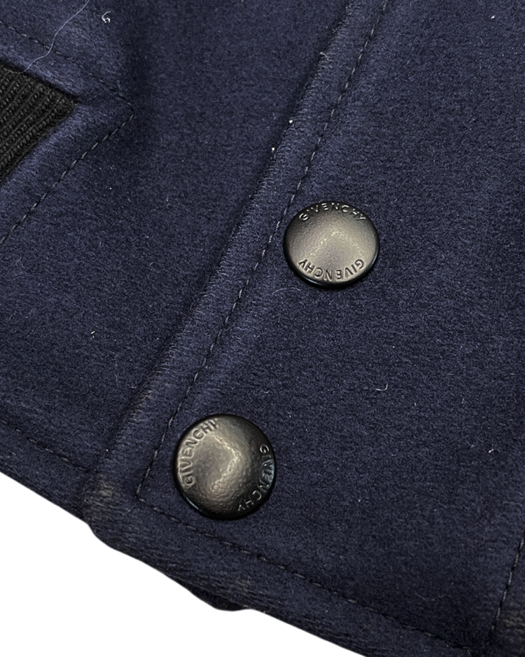 안정감 있으면서도 우아하고 세련된 디자인을 추구하는 지방시의 자켓입니다. 11F/W 시즌의 블루종으로 바디는 고급스러운 울 소재, 소매는 가죽으로 구성되어 클래식한 바시티 자켓을 현대적으로 재해석했습니다. 넥과 밑단, 소매의 립 디테일이 안정감을 주며, 소매의 지퍼 디테일이 지방시 특유의 감성을 더했습니다. 미니멀한 구조 안에서 소재의 질감 대비를 통해 존재감을 드러내는 피스입니다.