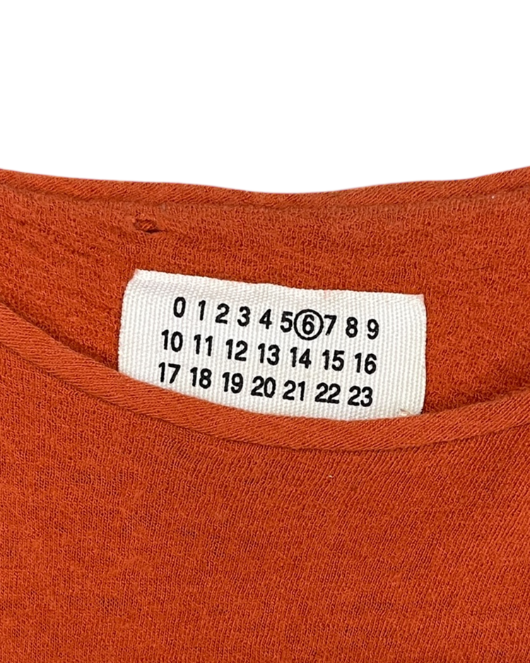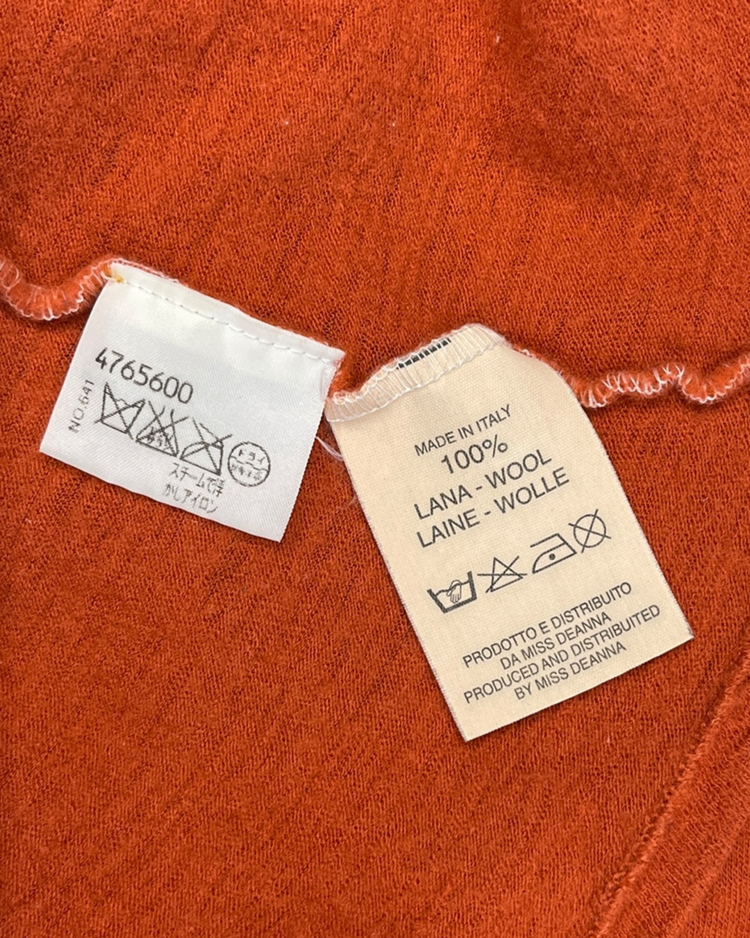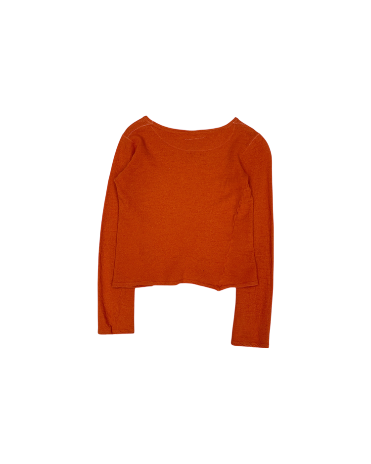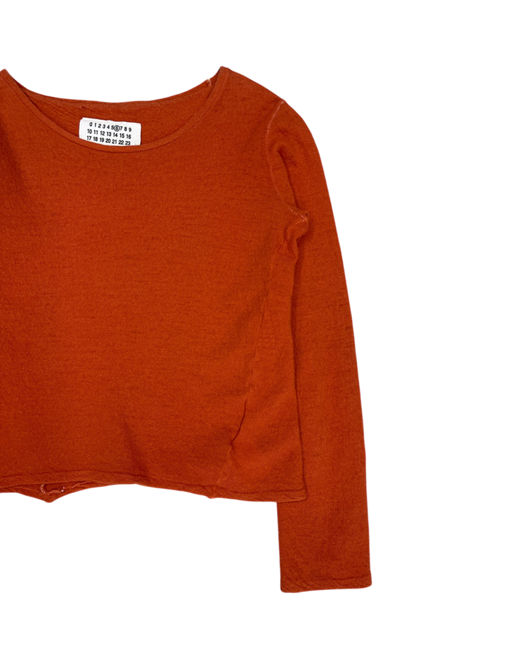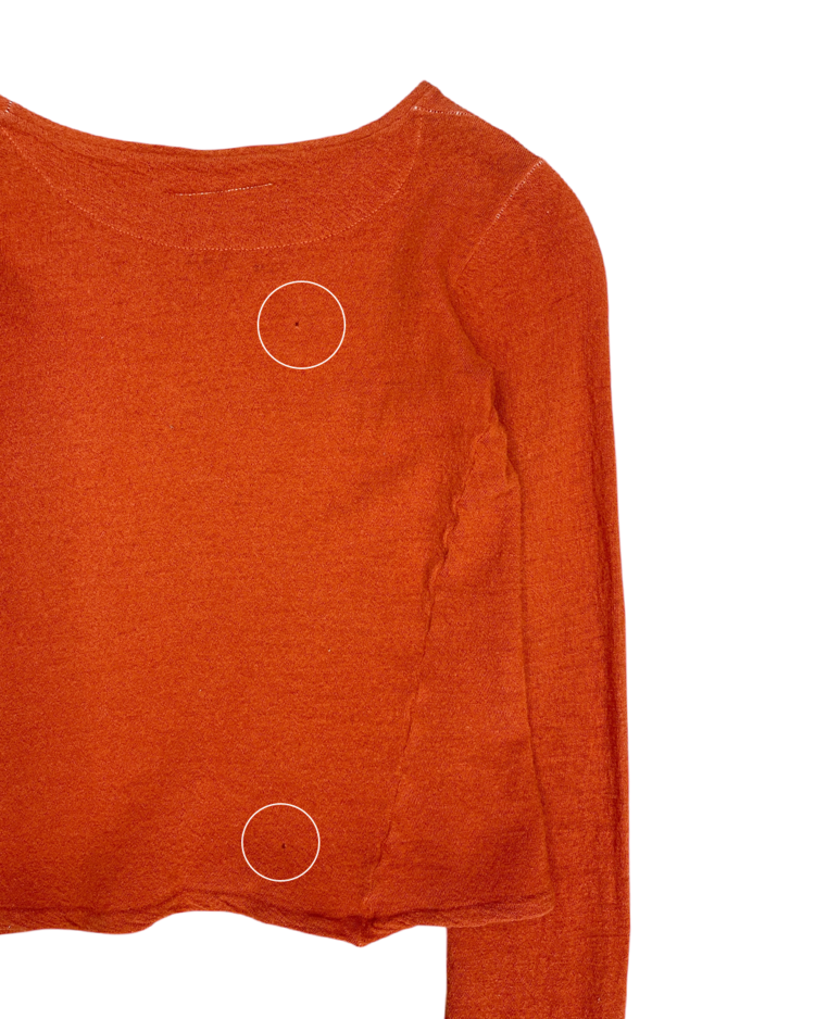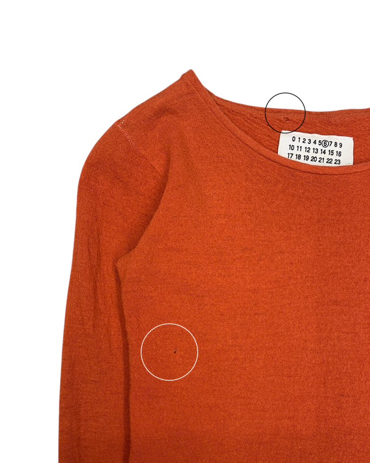 90년대 후반 ~ 2000년대 초반 마르지엘라의 니트 생산 파트너인 미스 디애나와 협업한 제품입니다. 미세하게 비대칭으로 마감된 밑단과 팔 기장으로, 마르지엘라 특유의 절제된 미니멀리즘과 초기 시대 특유의 수공적 감성이 드러나는 아카이브 피스입니다. 전체적으로 작은 울 풀림 존재합니다.