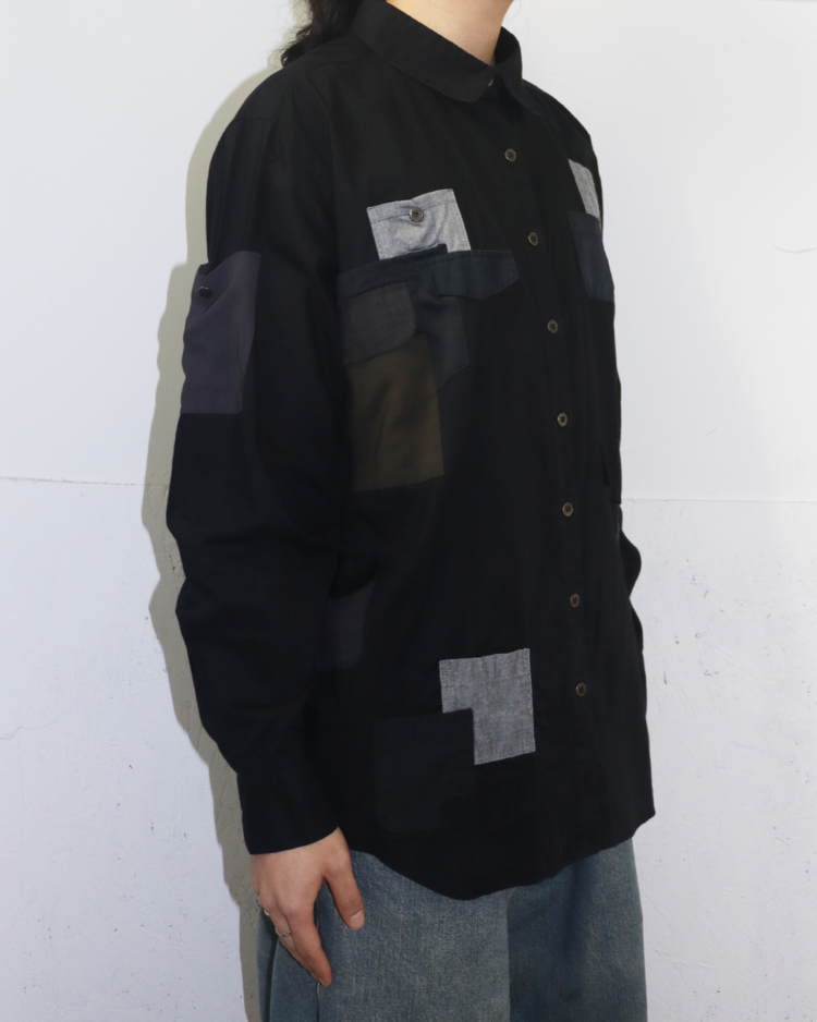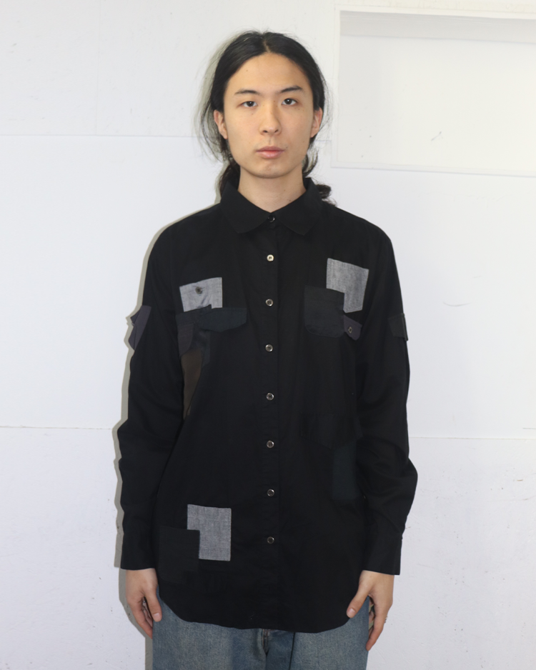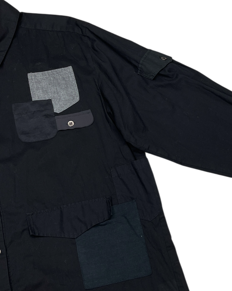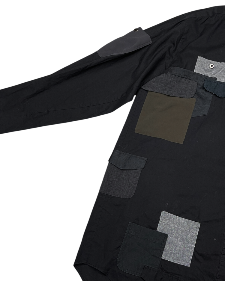 패션의 규범과 사회적 시선을 해체하며 아이러니한 미학을 구축한 스웨덴 출신 디자이너 앤 소피 백의 제품입니다. 비대칭적인 포켓 배치와 서로 다른 소재의 패치워크가 조화를 이루는 셔츠로, 밀리터리적 구조미와 반(反)패션적 감성을 동시에 담아냈습니다.