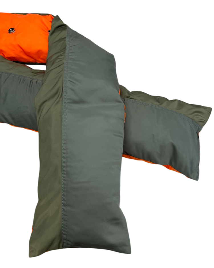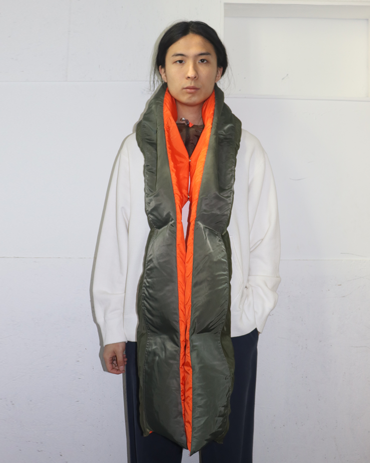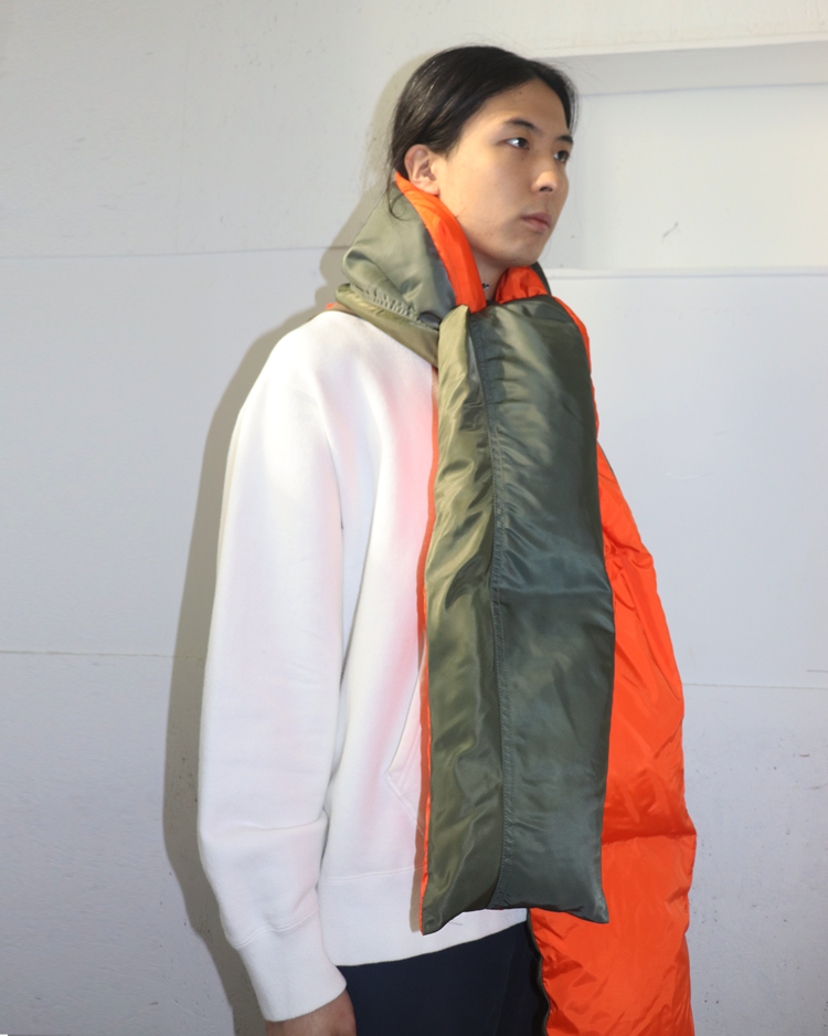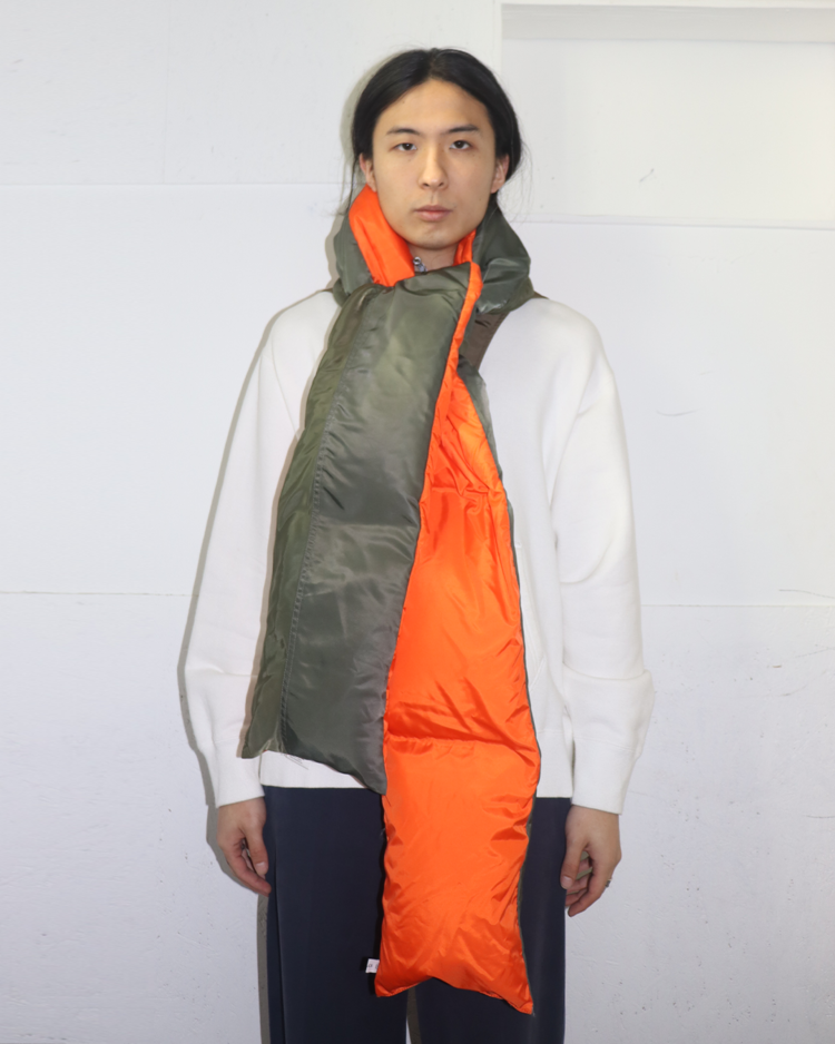 도쿄를 기반으로 브랜드를 전개하는 파세타즘의 제품입니다. MA-1을 머플러로 재해석한 제품으로 컬러 배치와 디테일이 매력적입니다. 미세한 이염 존재합니다.