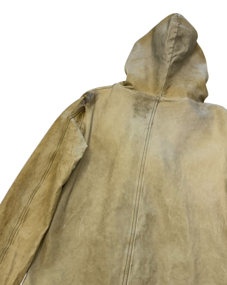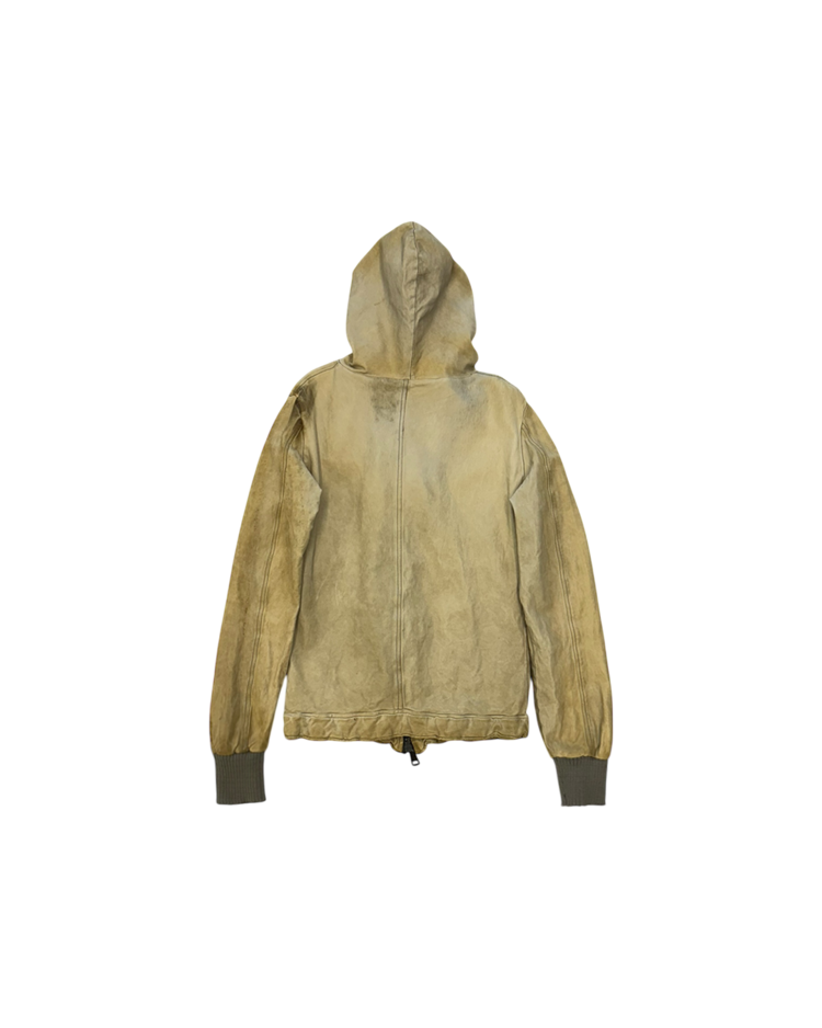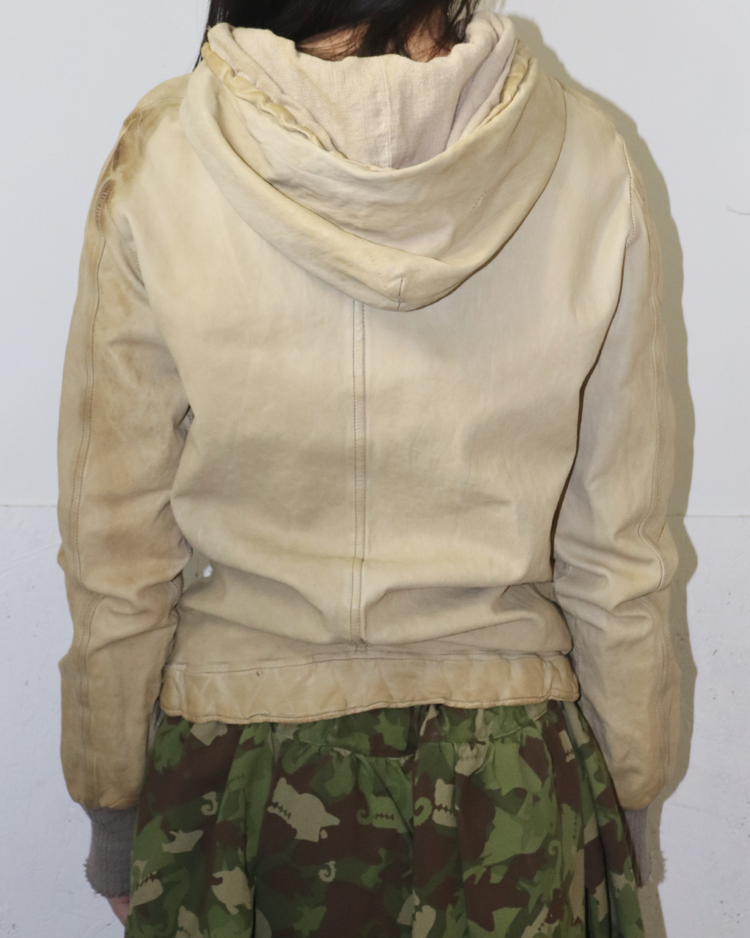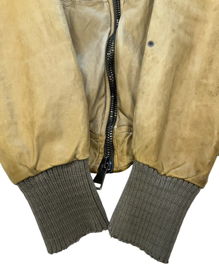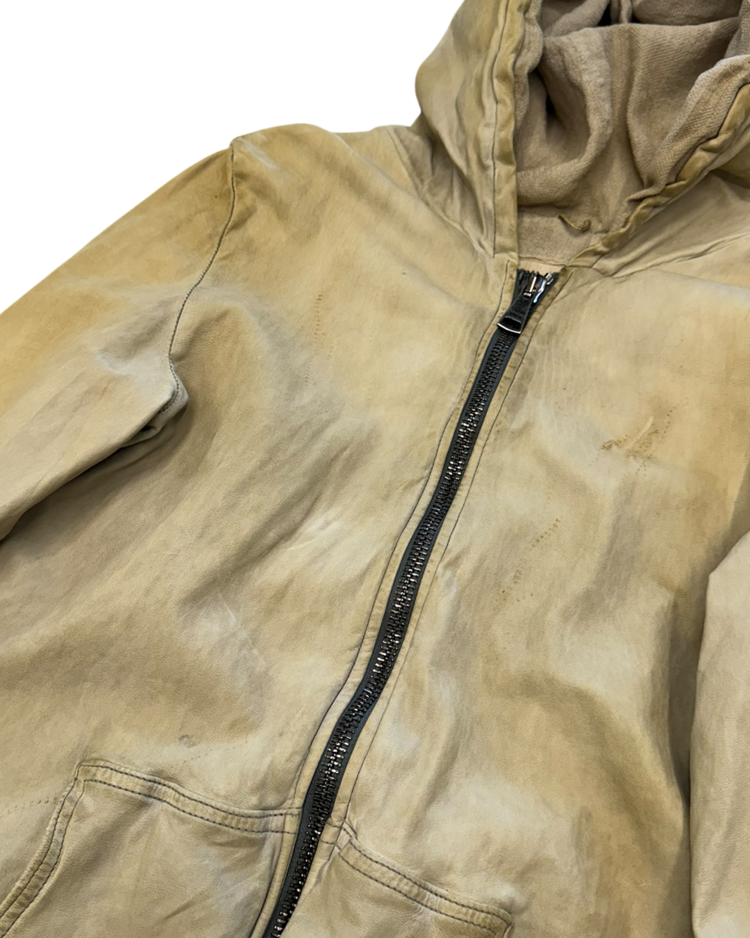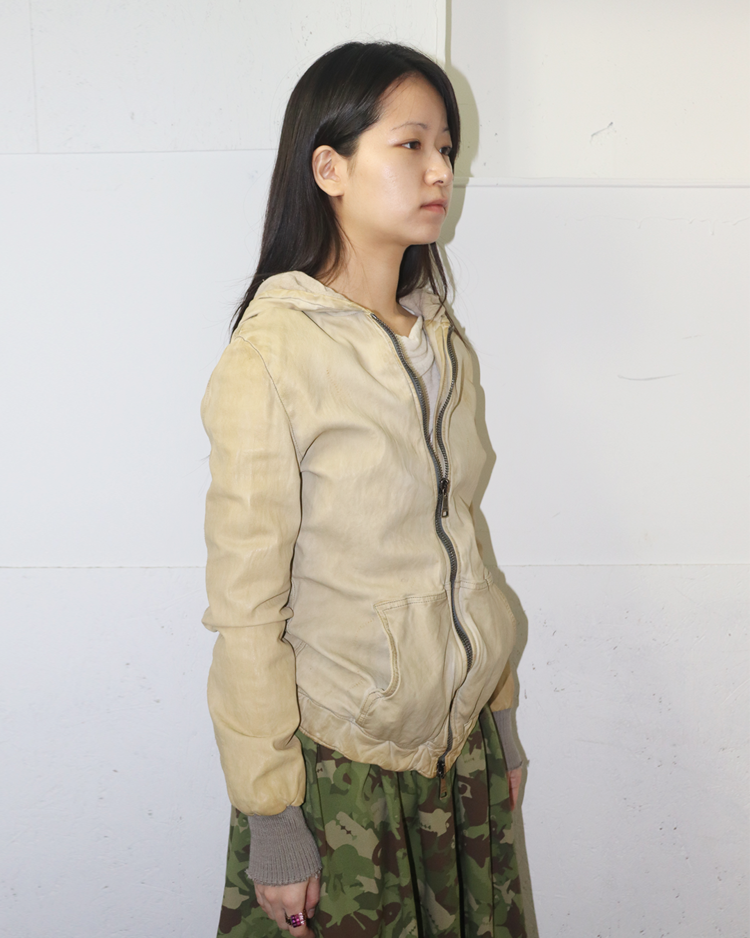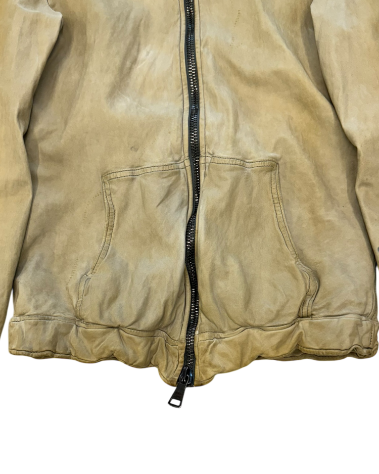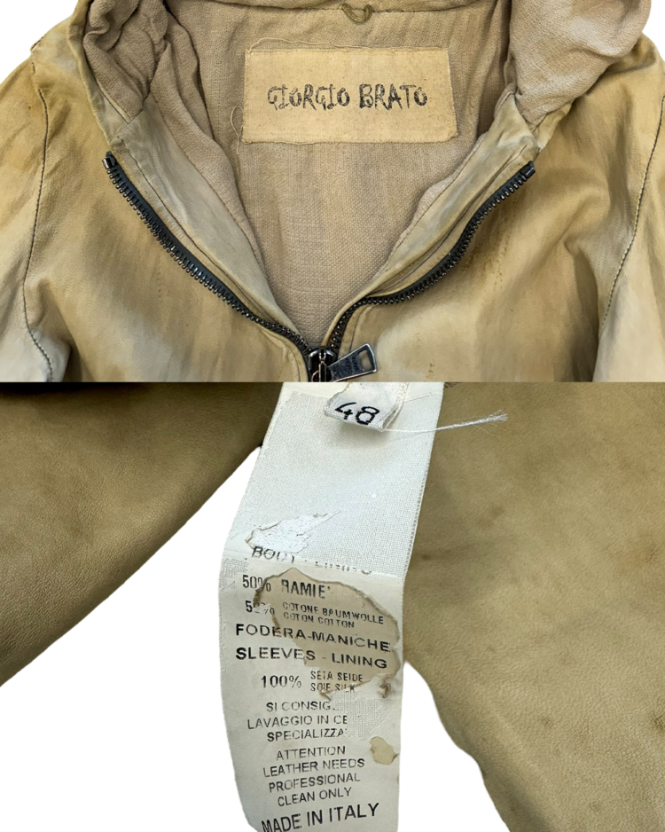 천연 가죽을 수작업으로 가공해 부드럽고 빈티지한 질감을 구현하는 것으로 유명한 피렌체 기반의 브랜드 조르지오 브라토의 제품입니다. 워싱 처리된 가죽과 굵은 리브 커프스가 조화를 이루며, 브랜드 특유의 자연스러운 마모감과 유연한 실루엣을 드러냅니다.