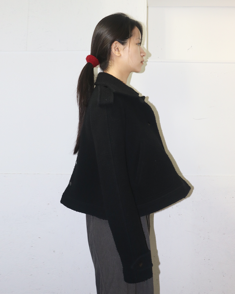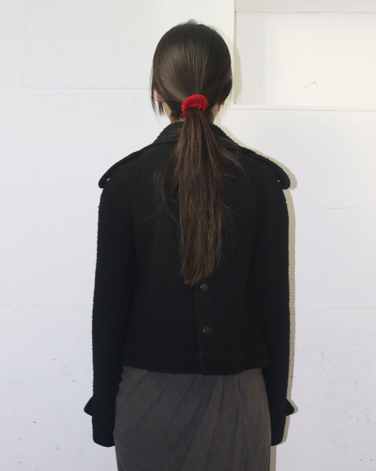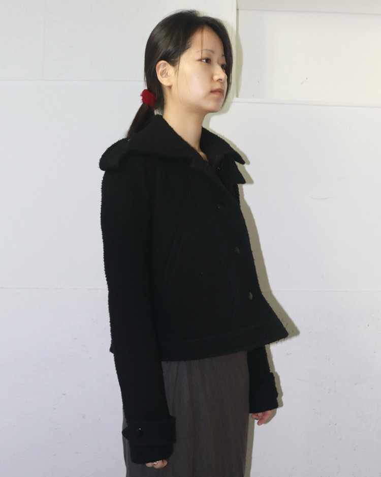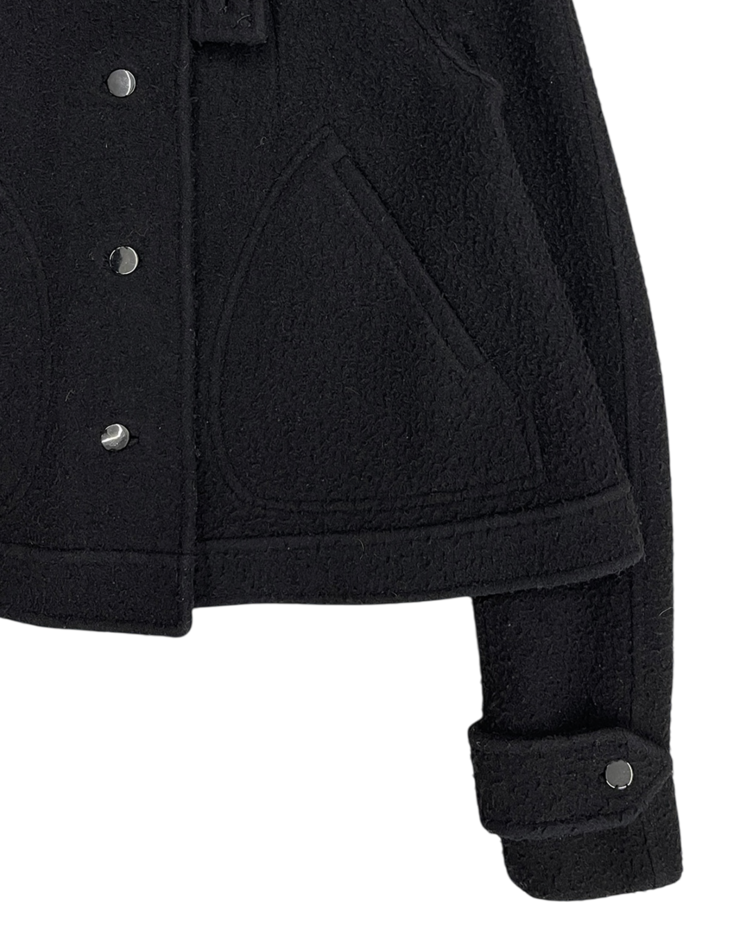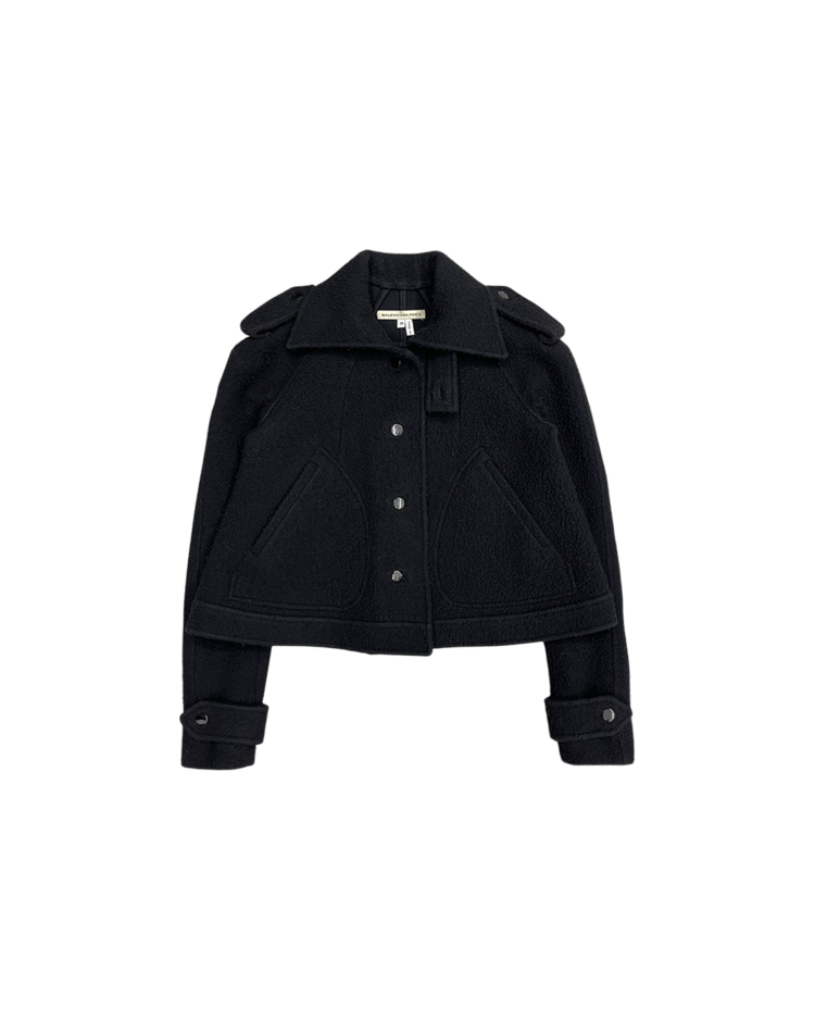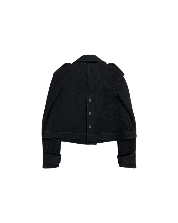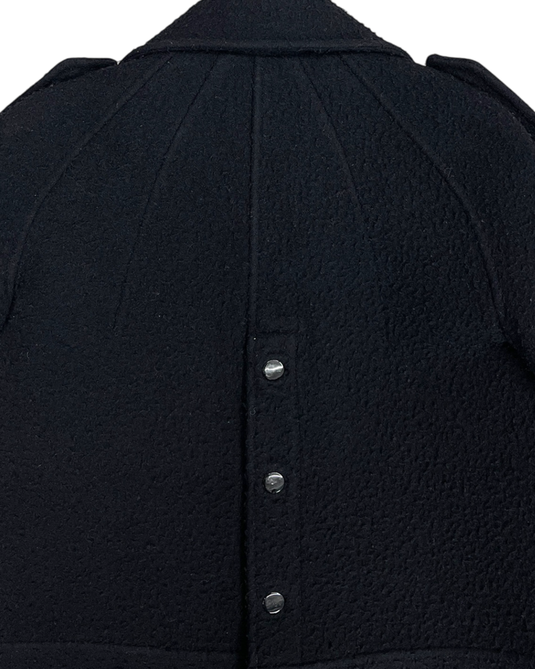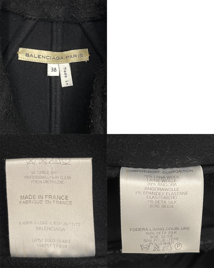 니콜라 게스키에르가 디렉팅하여 미래지향적인 건축적 실루엣이 강조된 발렌시아가의 제품입니다. 03AW 시즌의 자켓으로, 입체적인 봉제선과 러프한 울 텍스처, 독특한 비율이 결합된 디자인이 매력적입니다. 디렉터 특유의 아키텍처럴 감성을 가장 잘 보여주는 아카이브 피스입니다.
