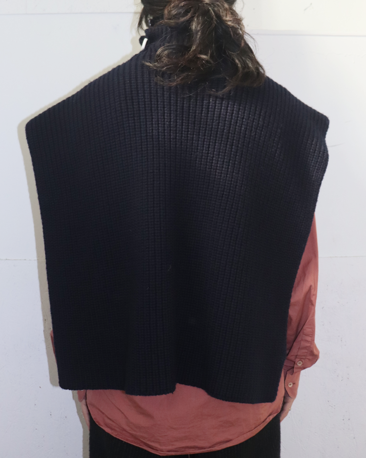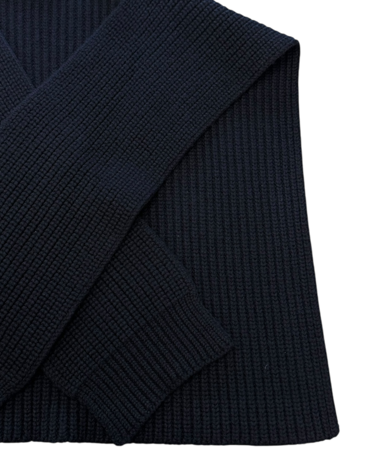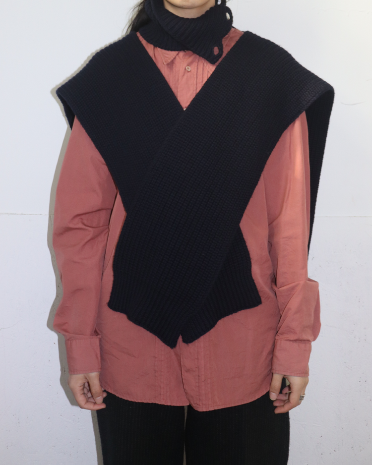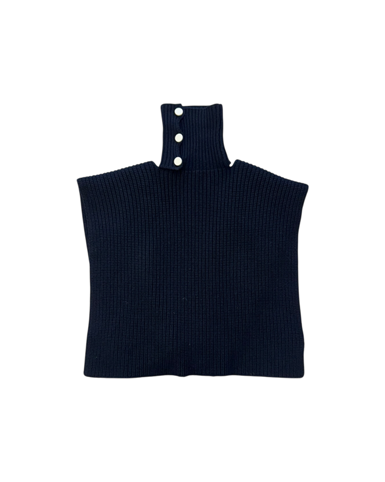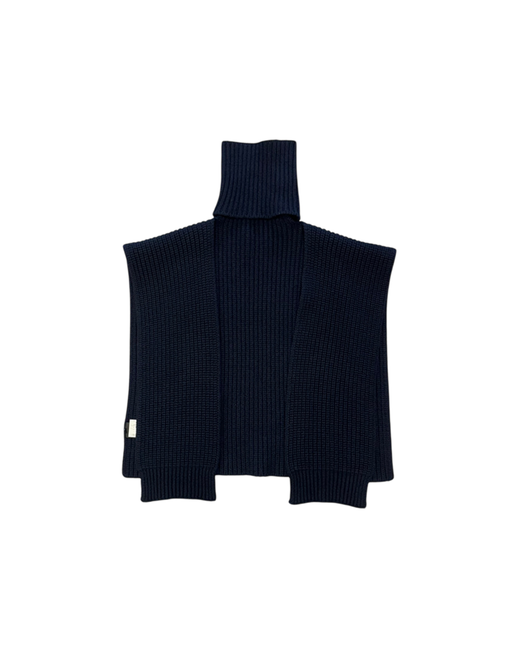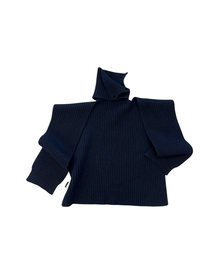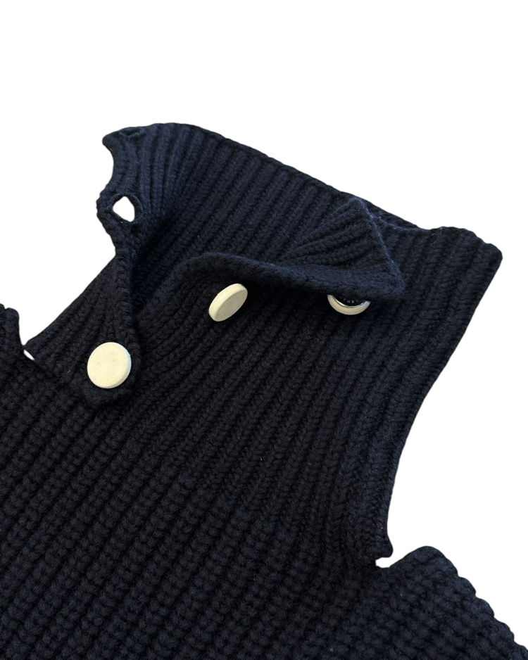 90~00년대 유스 서브컬처를 모던한 테일러링과 실험적 실루엣으로 재해석하는 브랜드 라프 시몬스의 제품입니다. 굵은 리브 조직의 니트 위에 버튼으로 잠그는 하이넥이 더해진 케이프 형태의 디자인으로, 숄처럼 둘러 연출하거나 목을 단단히 감싸 실루엣을 강조할 수 있는 구조입니다. 최소한의 디테일로 특유의 모던함을 전달하며, 웨어러블한 형태 안에 조형적 긴장을 담아낸 것이 매력적인 아이템입니다.