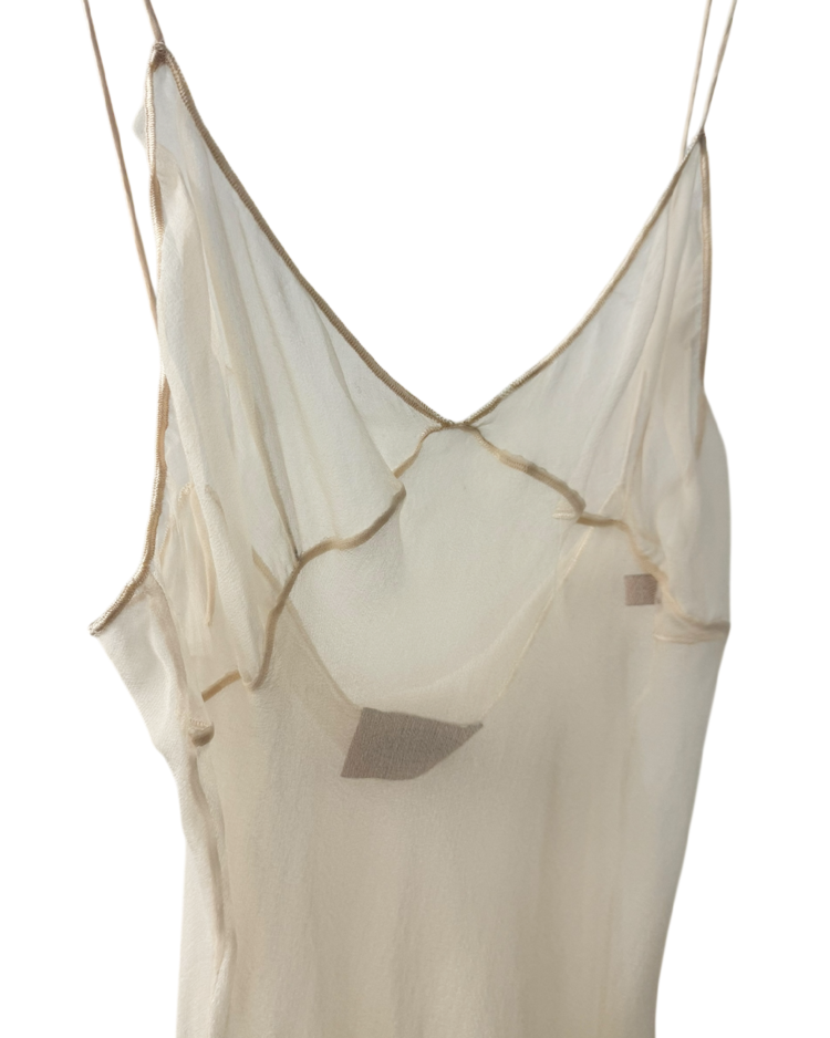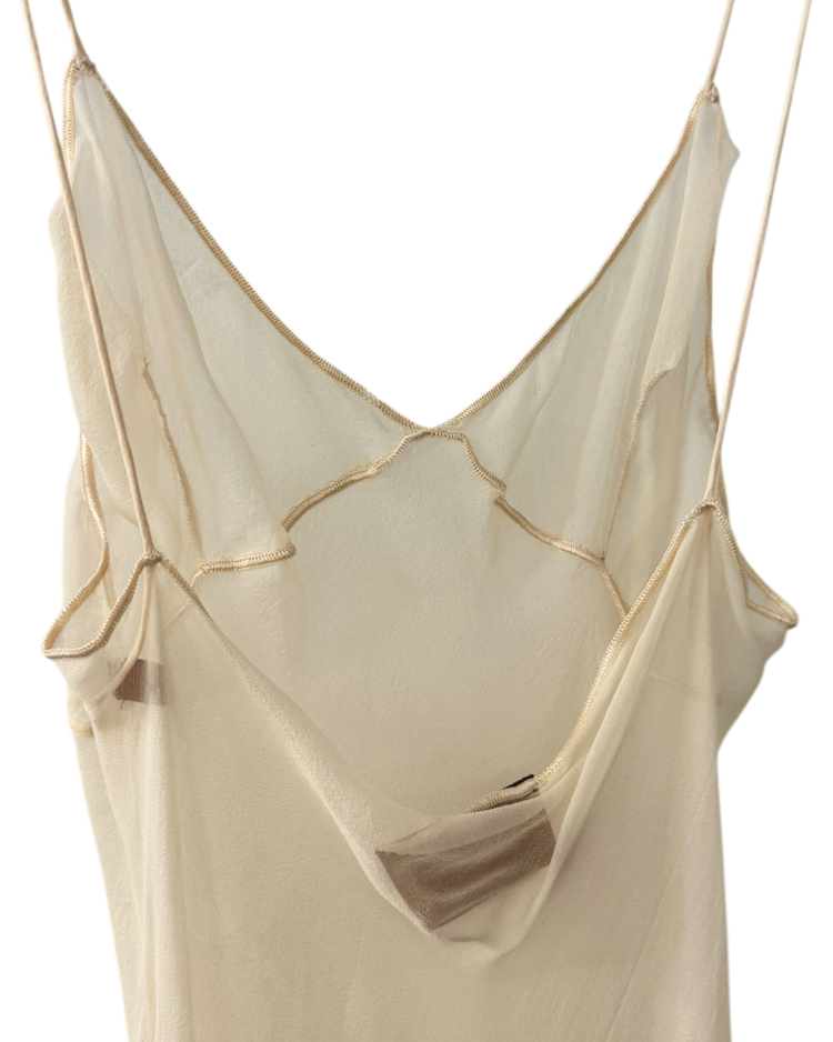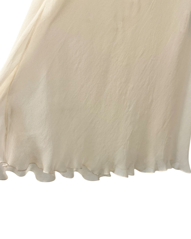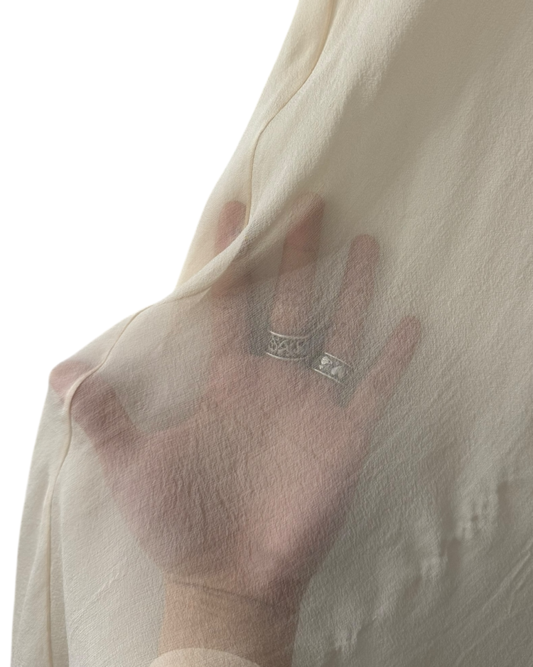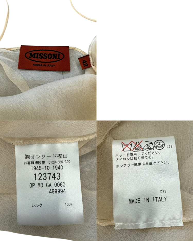 섬세한 니트워크와 우아한 실루엣으로 사랑받아온 이탈리아 브랜드 미쏘니의 제품입니다. 브랜드 특유의 감각을 보다 미니멀하고 감각적인 방식으로 풀어낸 실크 드레스입니다. 100% 실크의 투명한 질감이 자연스러운 드레이프를 만들고, 상단의 얇은 시스루 패널이 구조미를 더해줍니다. 끝단이 가볍게 말린 웨이브로 마감되어 움직일 때마다 부드럽게 흐르는 실루엣을 연출합니다.